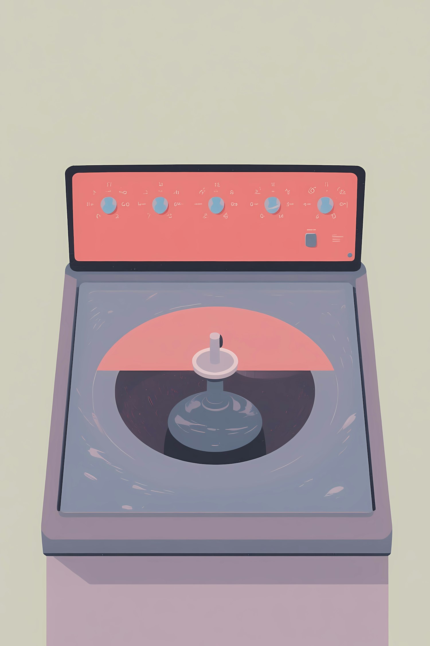 Stylized illustration of a retro record player with a red control panel and blue knobs, showcasing a unique and artistic design.