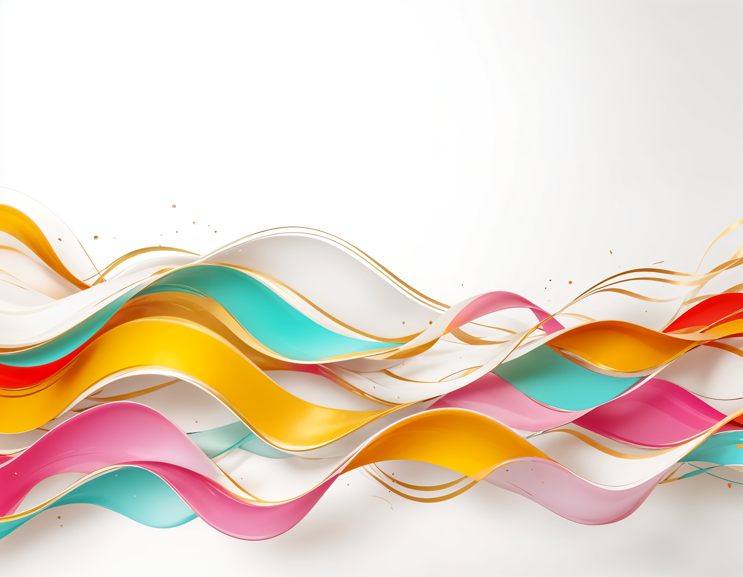 Colorful abstract ribbons with golden accents on a white background, creating a vibrant and dynamic visual with depth and elegance.