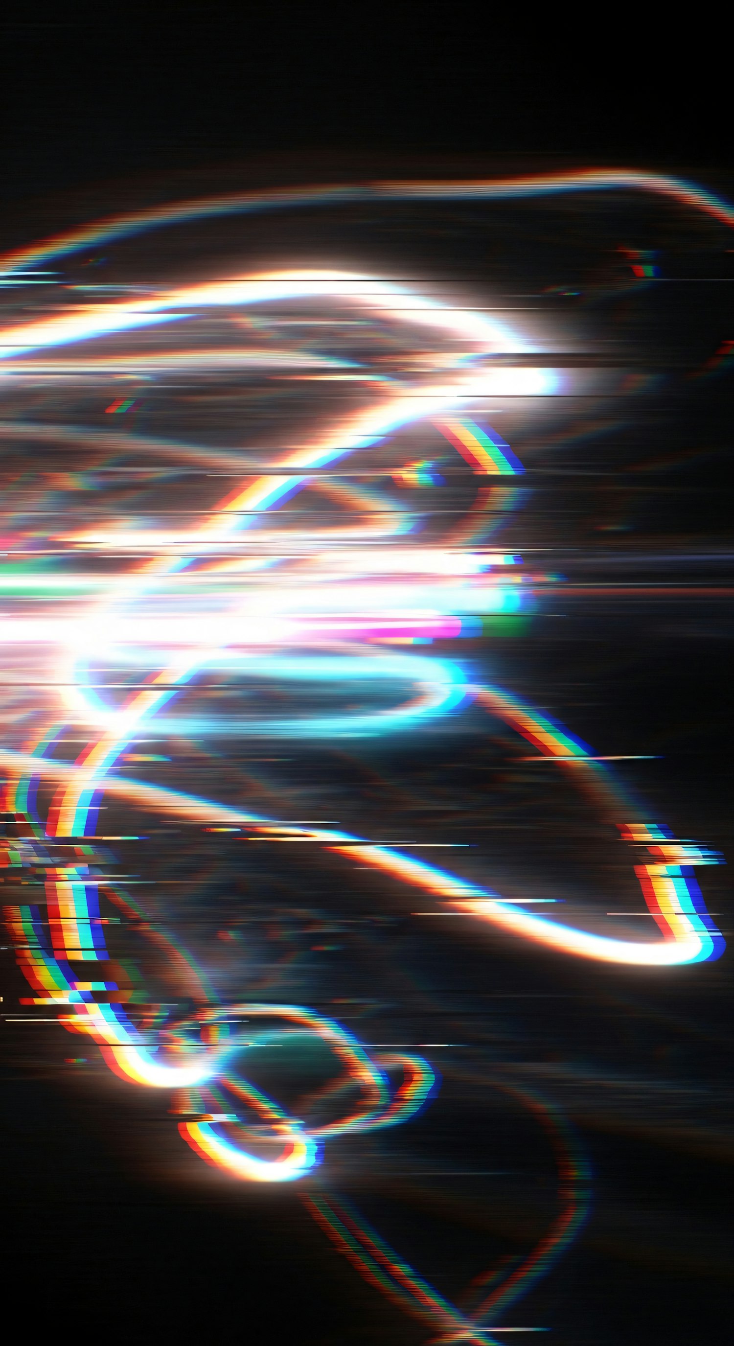 Abstract light trails in vibrant colors against a dark background, creating a dynamic and futuristic visual effect.