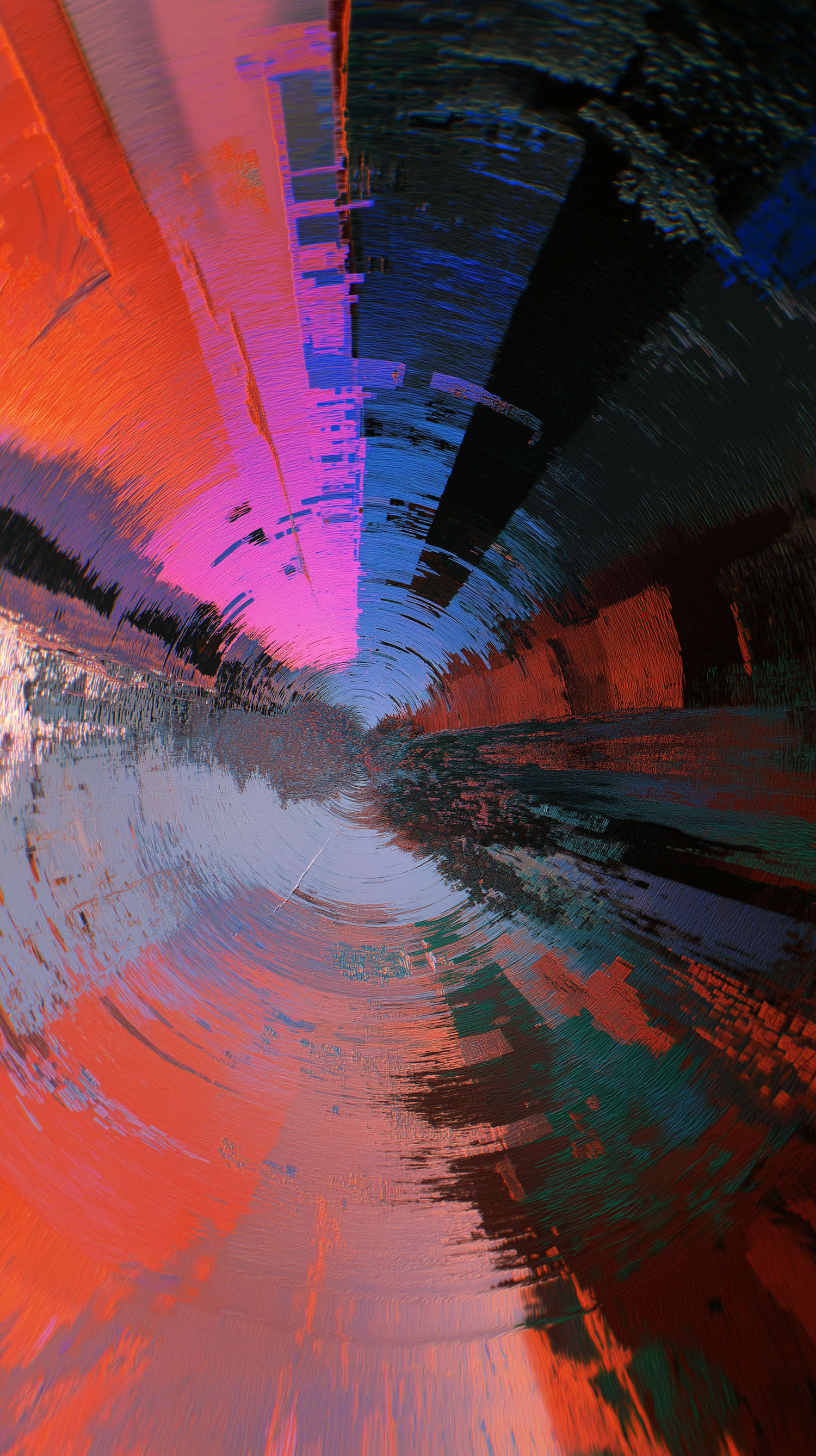 Abstract digital art with swirling red, blue, and pink hues, creating a dynamic vortex effect with intricate textures and depth.