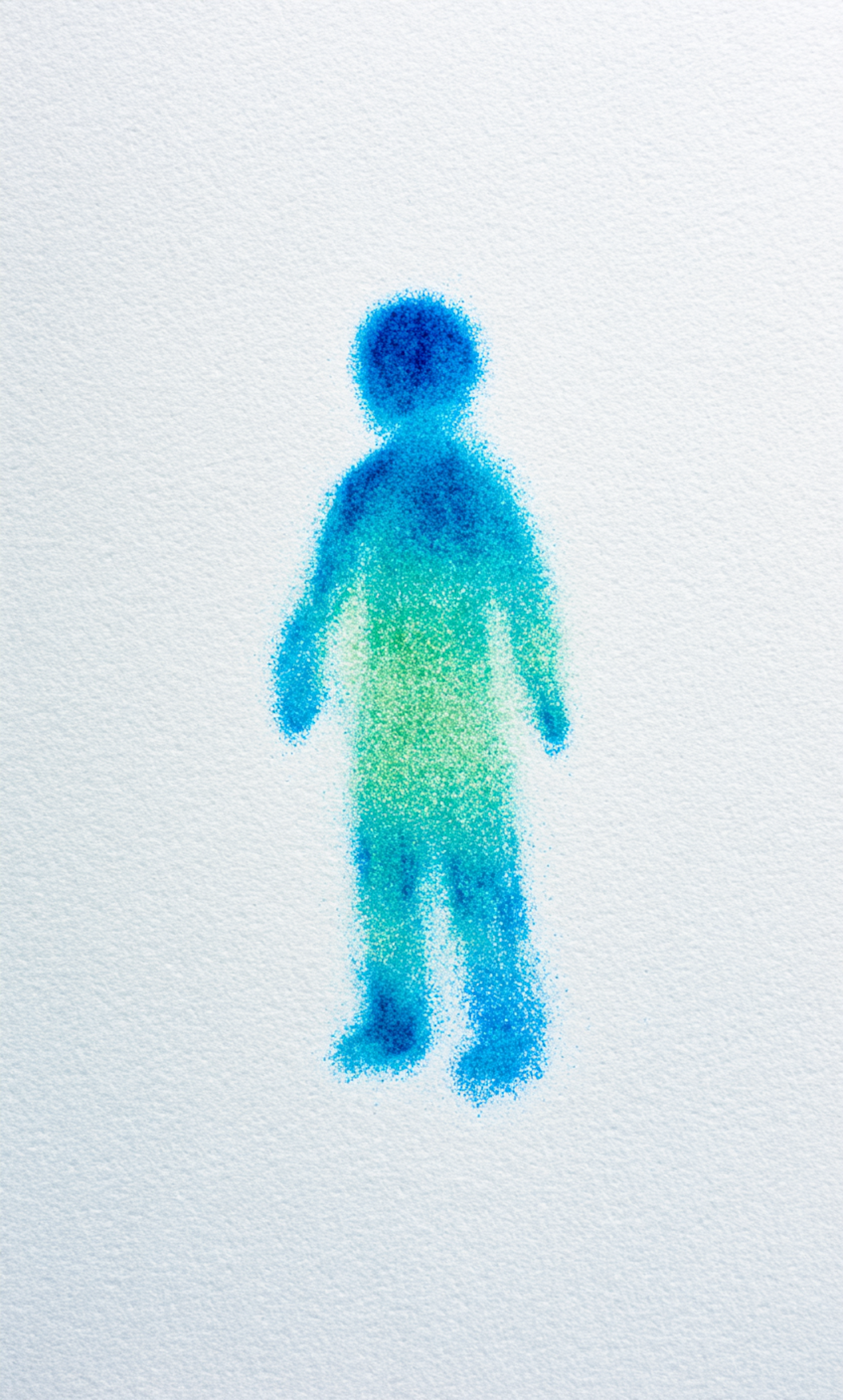A minimalist watercolor silhouette blending green and blue tones on a white background, showcasing elegant abstract art.