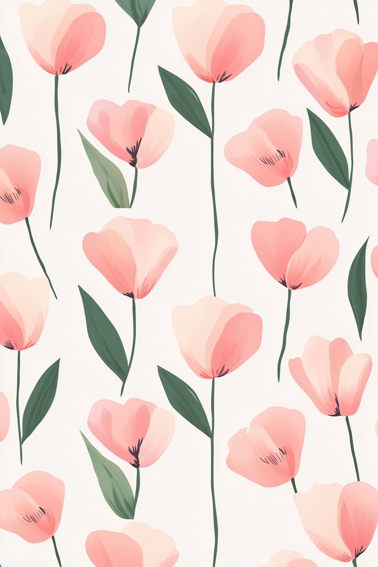 Soft pink tulips with green leaves on a cream background, creating a delicate watercolor floral pattern perfect for spring designs.
