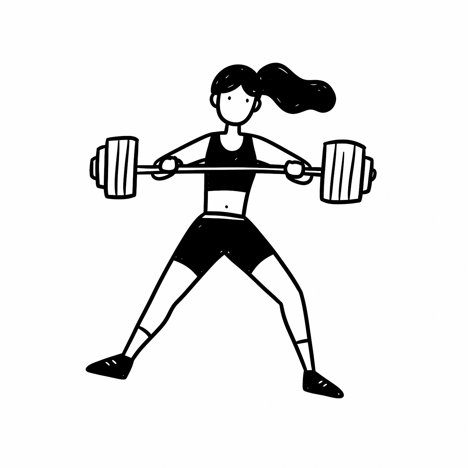 Stylized black-and-white illustration of a person lifting a barbell, showcasing strength and fitness in a minimalist design.