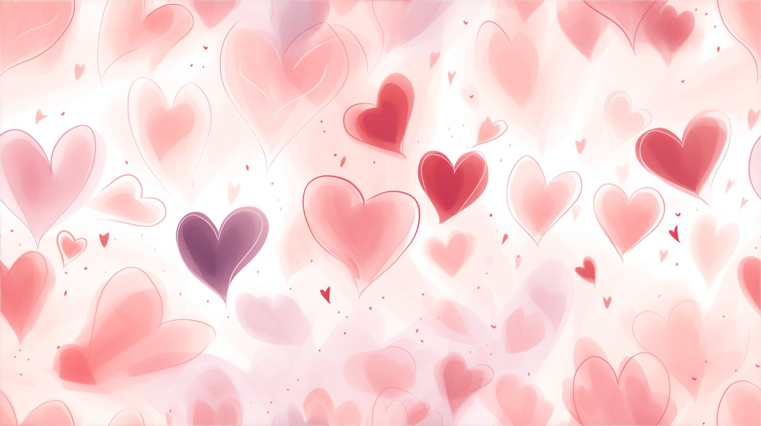 Whimsical heart illustration with pink, red, and purple hues on a soft background, creating a dreamy and romantic atmosphere.
