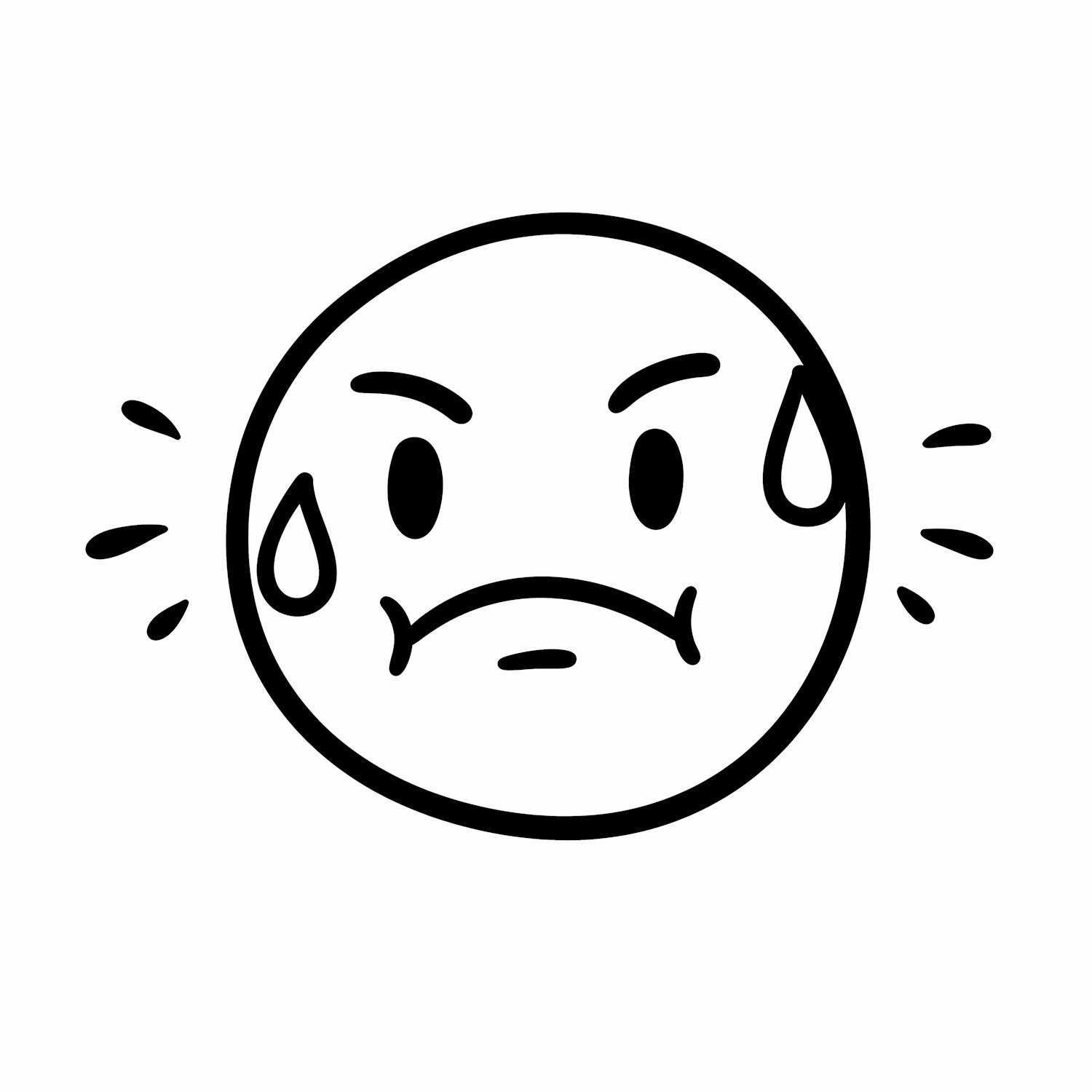 Black-and-white illustration of a worried face with sweat drops, perfect for conveying stress or concern in a simple design.