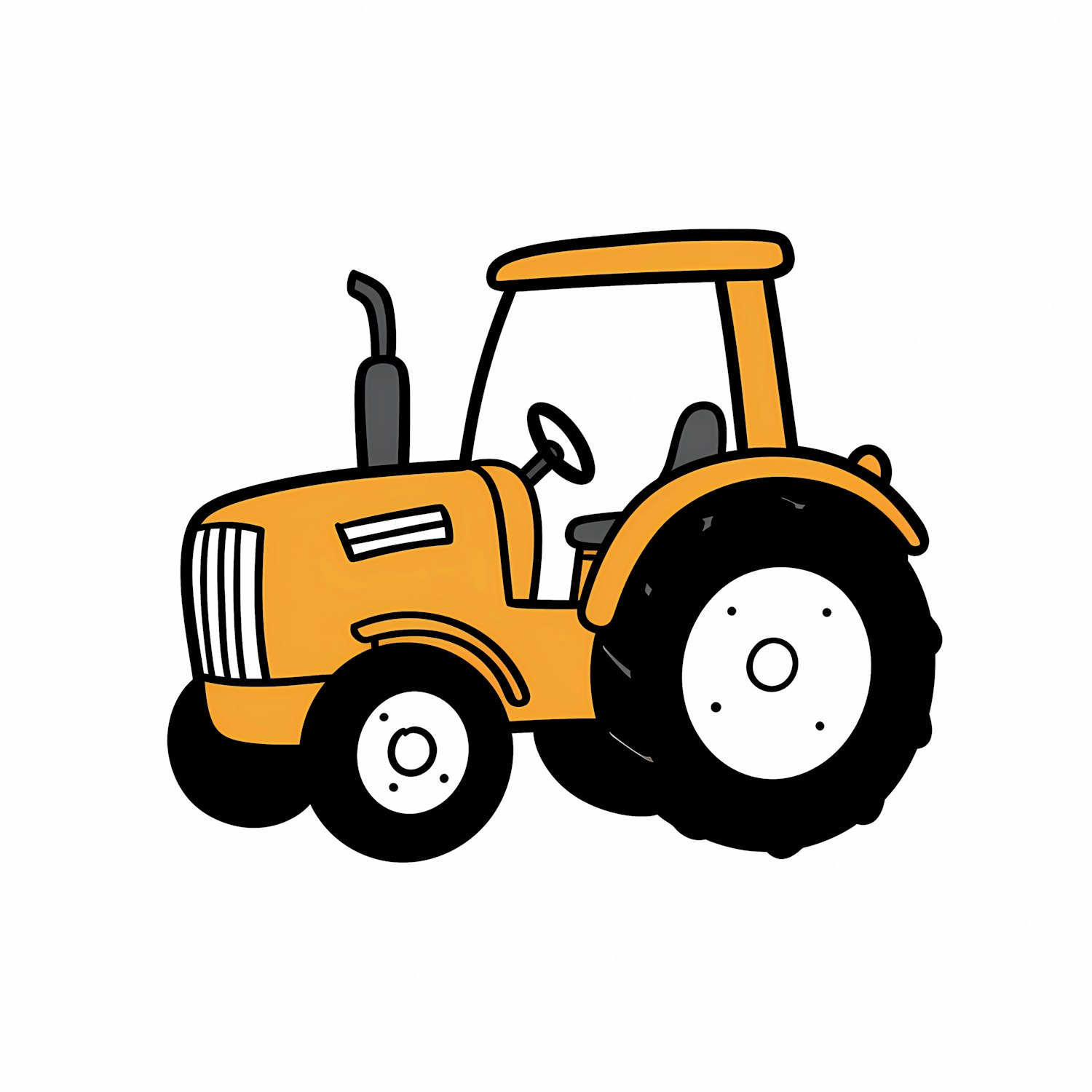 A vibrant yellow tractor illustration with bold black tires, perfect for farm-themed designs or educational materials.