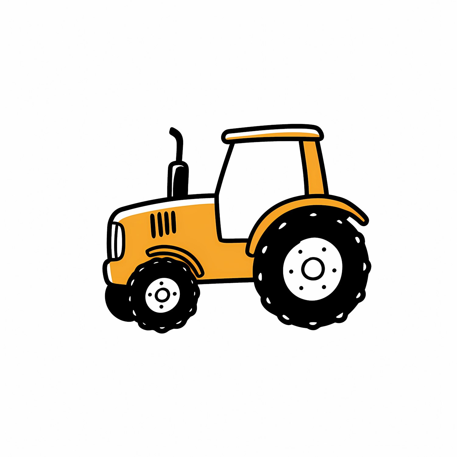 Bright yellow cartoon tractor with black tires and white hubs, perfect for kids' educational materials or playful designs.