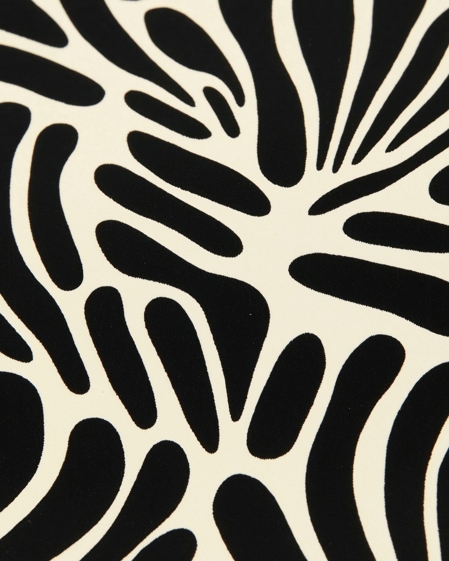 Bold black and white abstract pattern resembling zebra stripes, perfect for modern design or fashion inspiration.