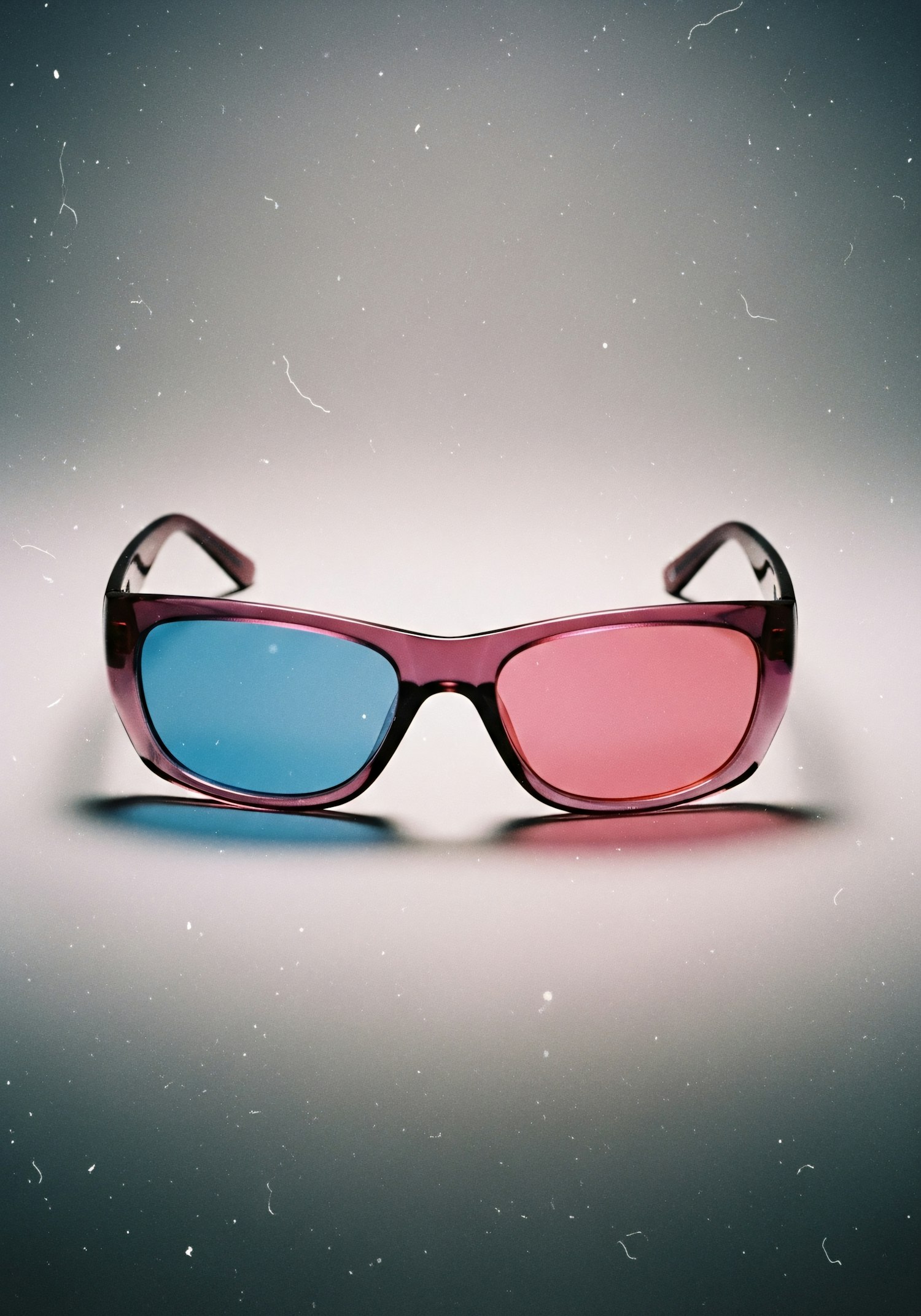 Stylish 3D glasses with red and blue lenses, perfect for immersive viewing experiences, set against a clean, gradient backdrop.