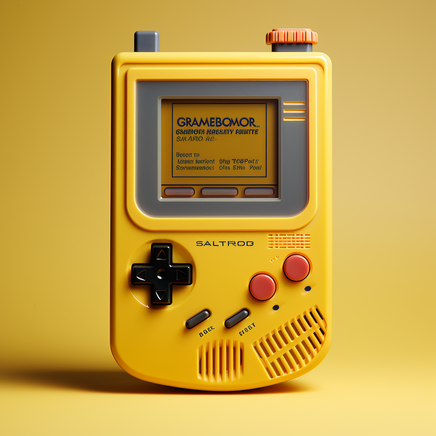 Bright yellow retro handheld gaming device with pixelated screen and classic controls, evoking nostalgia for vintage gaming.