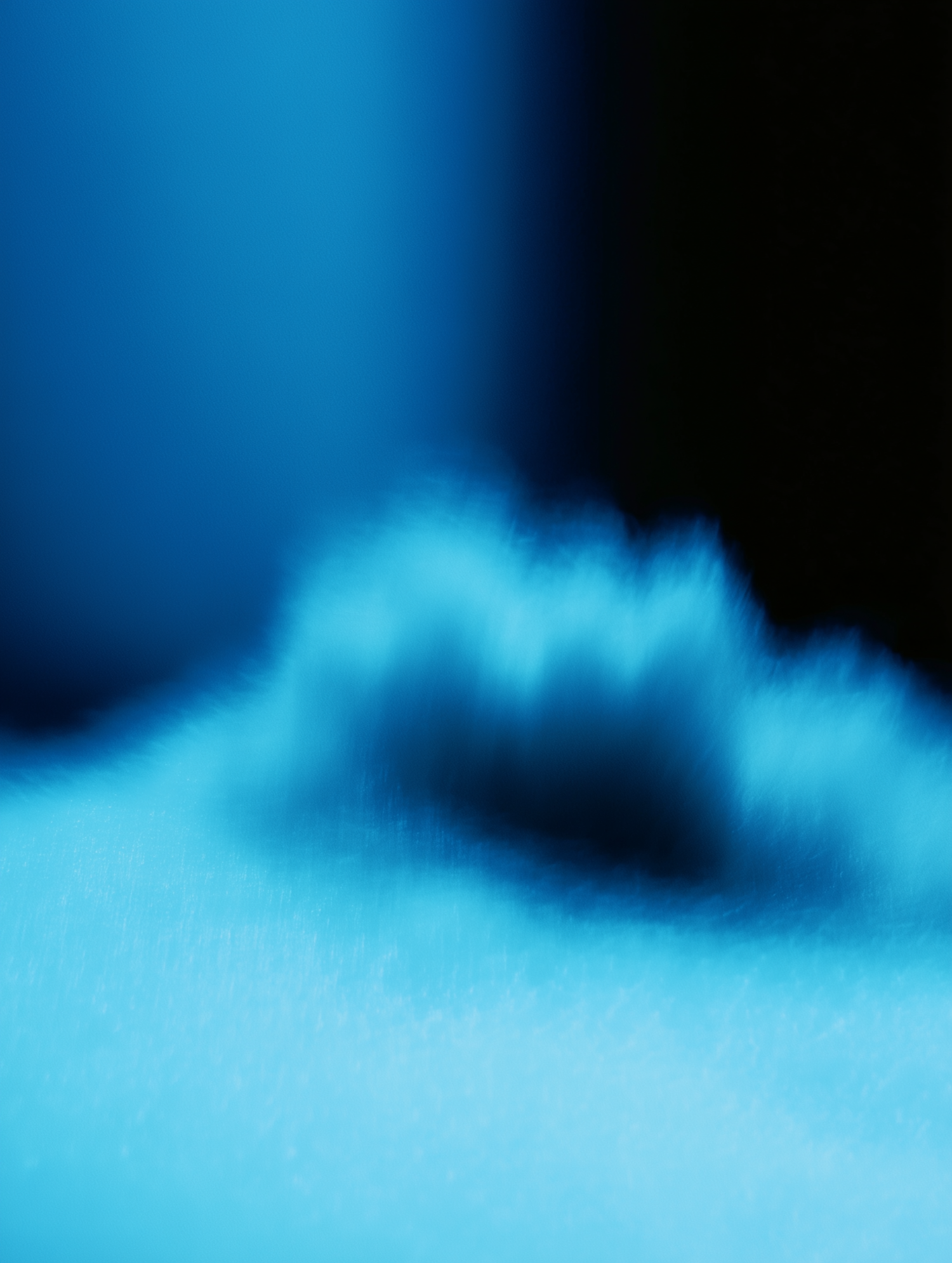 Abstract blue-toned image with soft, cloud-like textures and a gradient from light to dark, evoking a dreamy and mysterious atmosphere.