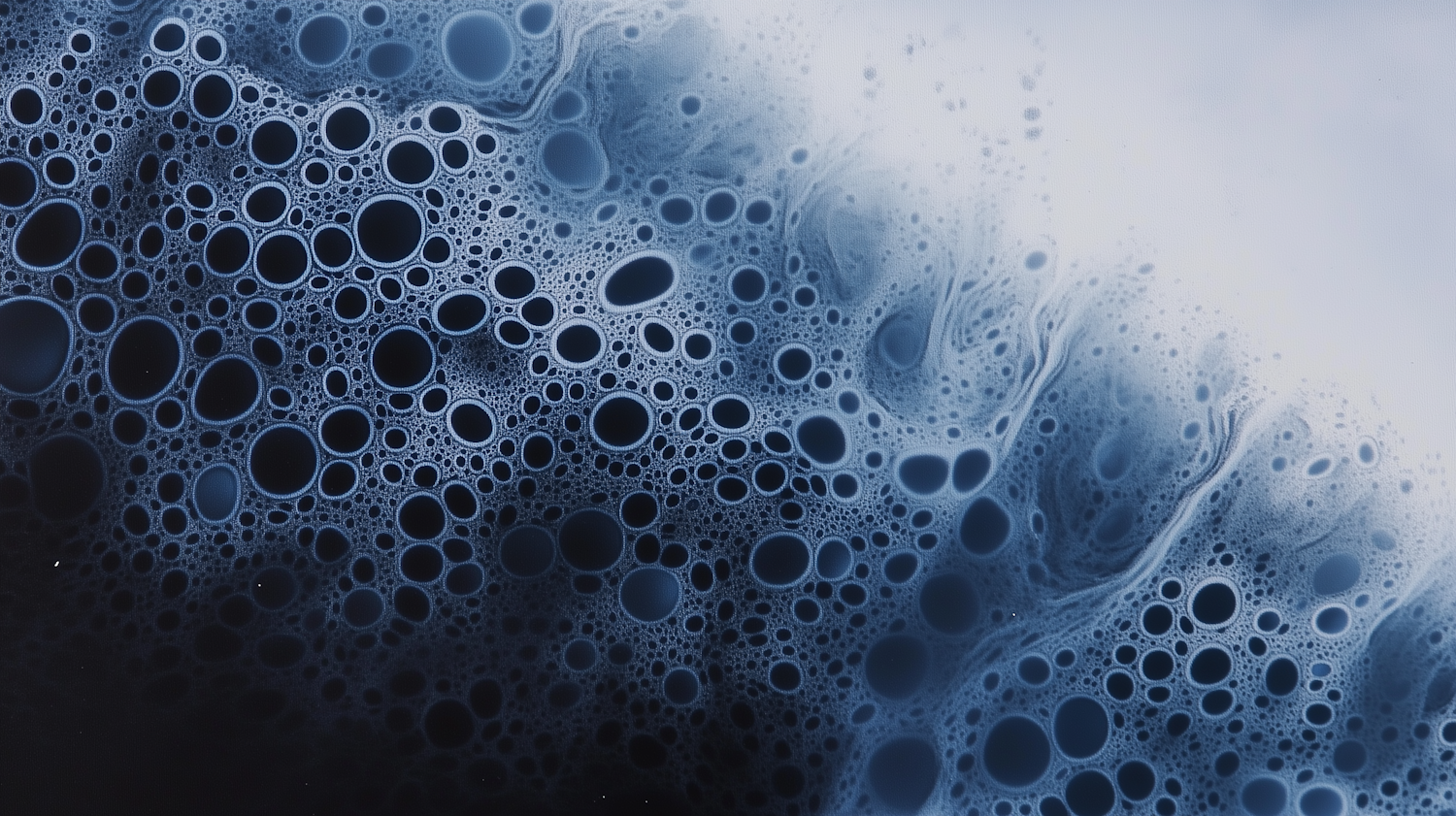 Abstract blue gradient with bubble-like patterns, transitioning from dark to light, creating a dynamic and textured visual effect.