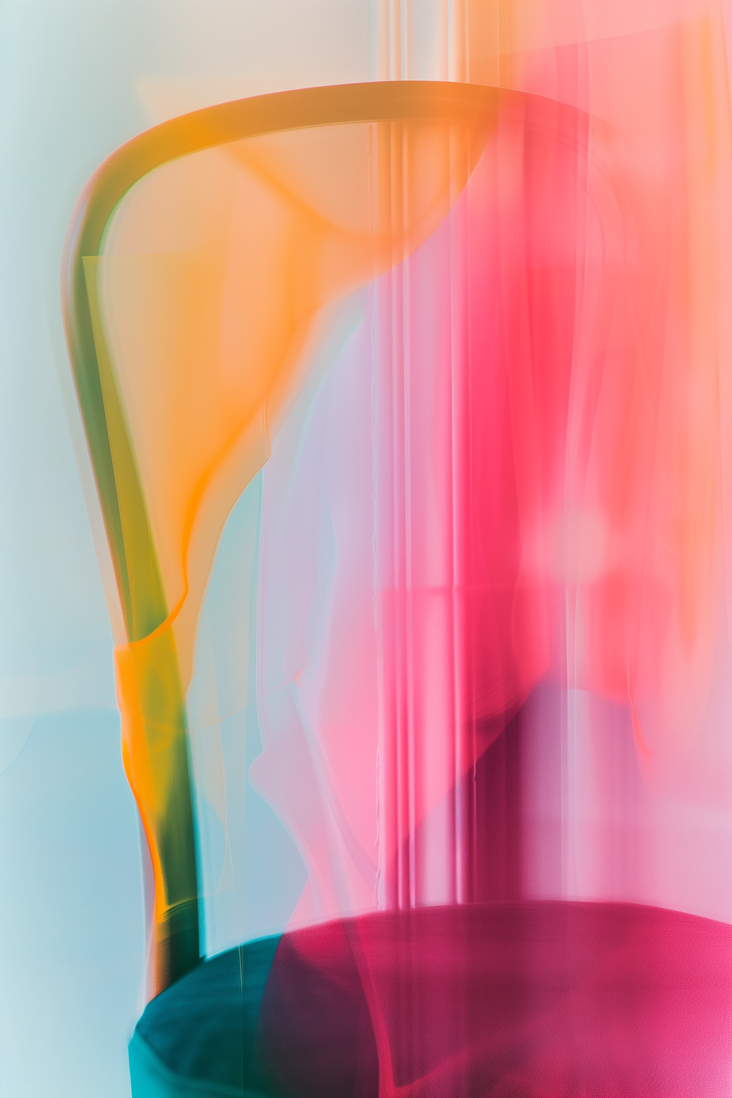 Abstract art with a chair silhouette behind vibrant pink, orange, and teal gradients. A dreamy blend of colors and soft textures.
