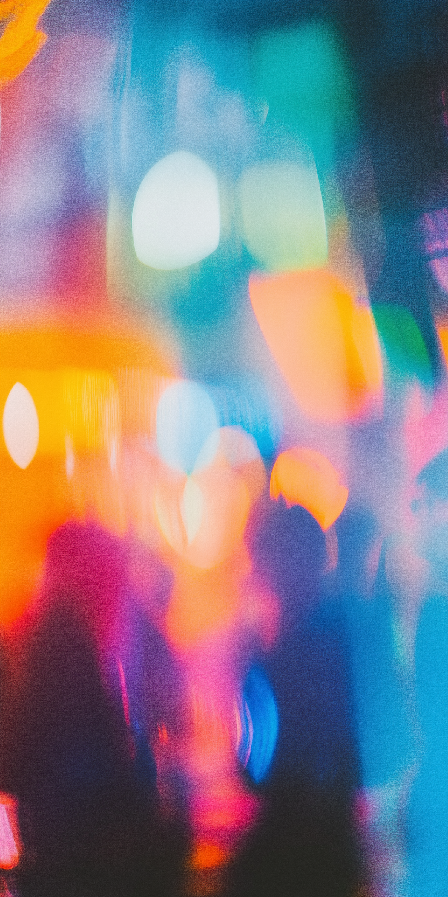 Abstract blur of vibrant city lights in blues, pinks, and oranges, creating a dreamy and energetic urban atmosphere.