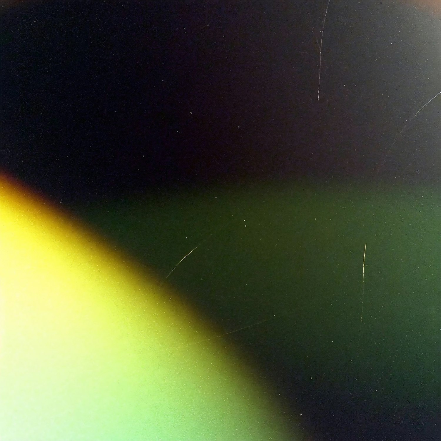 Abstract gradient with vibrant yellow and green hues transitioning to dark shades, featuring subtle lines and specks.