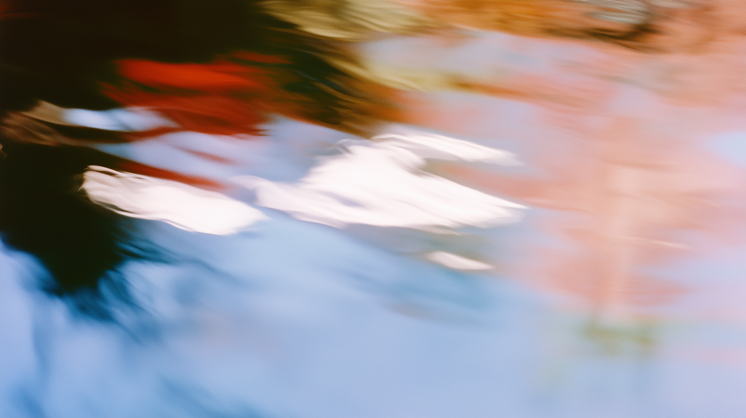 Abstract blend of red, blue, and white hues with a rippling effect, resembling reflections on water. Dreamy and impressionistic vibe.