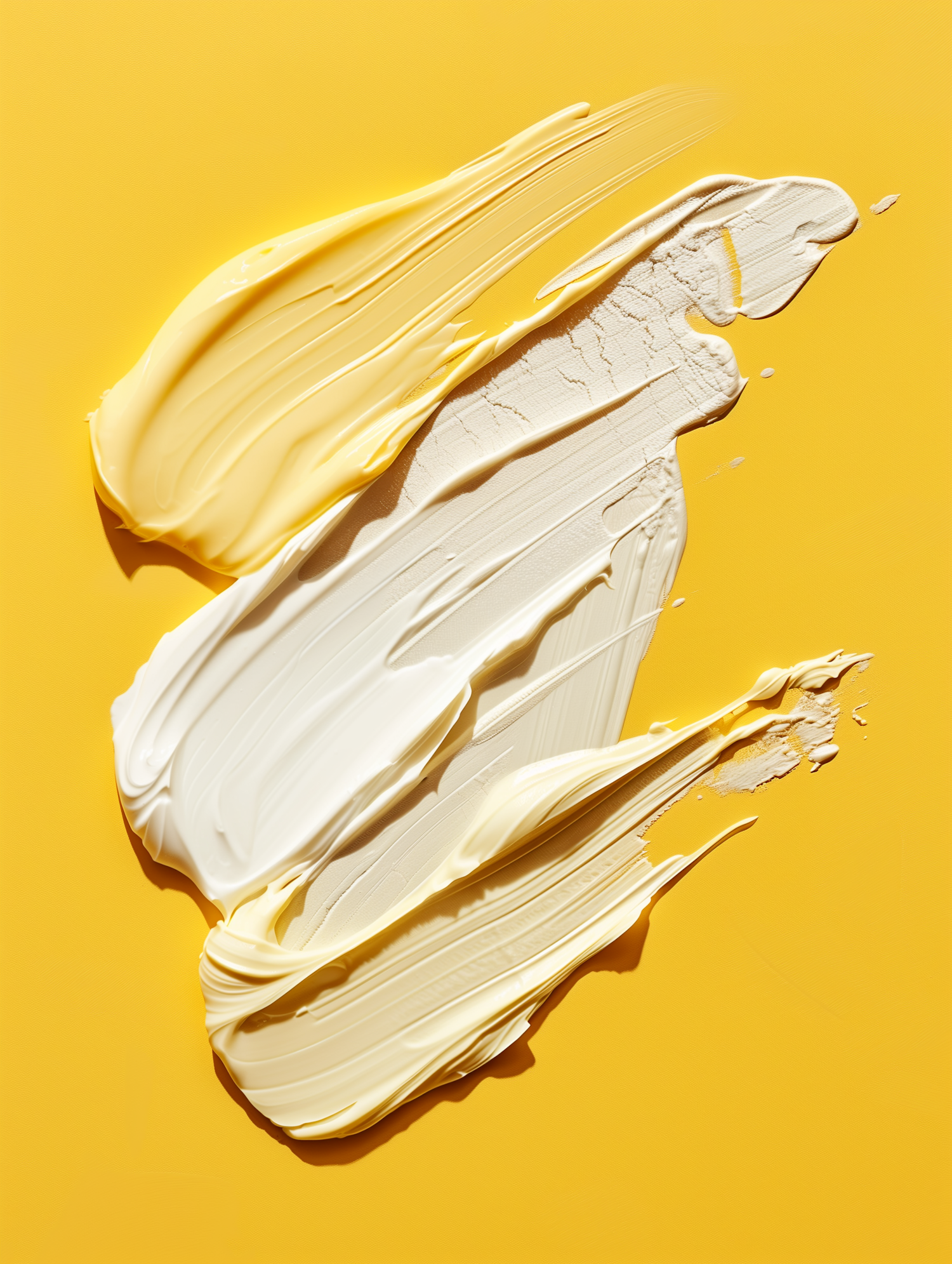 Creamy white and yellow streaks smeared artistically on a vivid yellow background, creating a striking abstract composition.