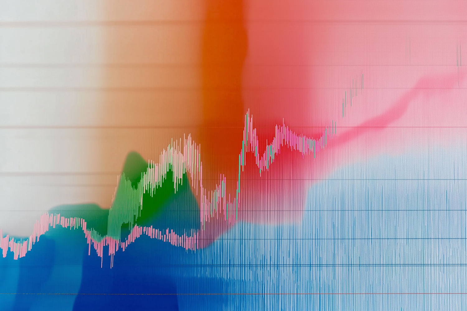 Colorful abstract graph with fluctuating lines and gradient background, blending data visualization with artistic design.