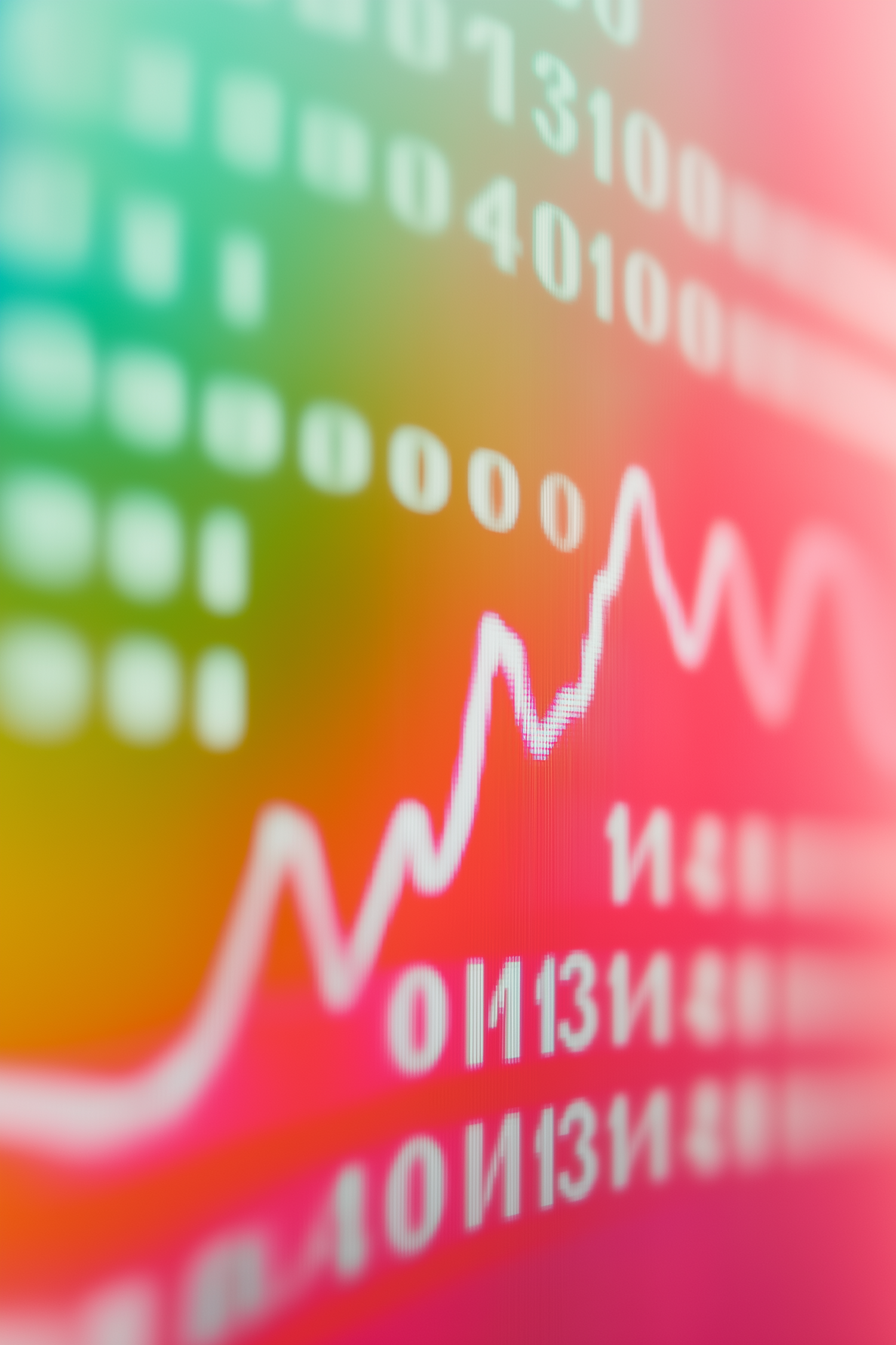 Abstract image of a colorful gradient background with a white line graph and blurred numerical data, symbolizing financial trends.