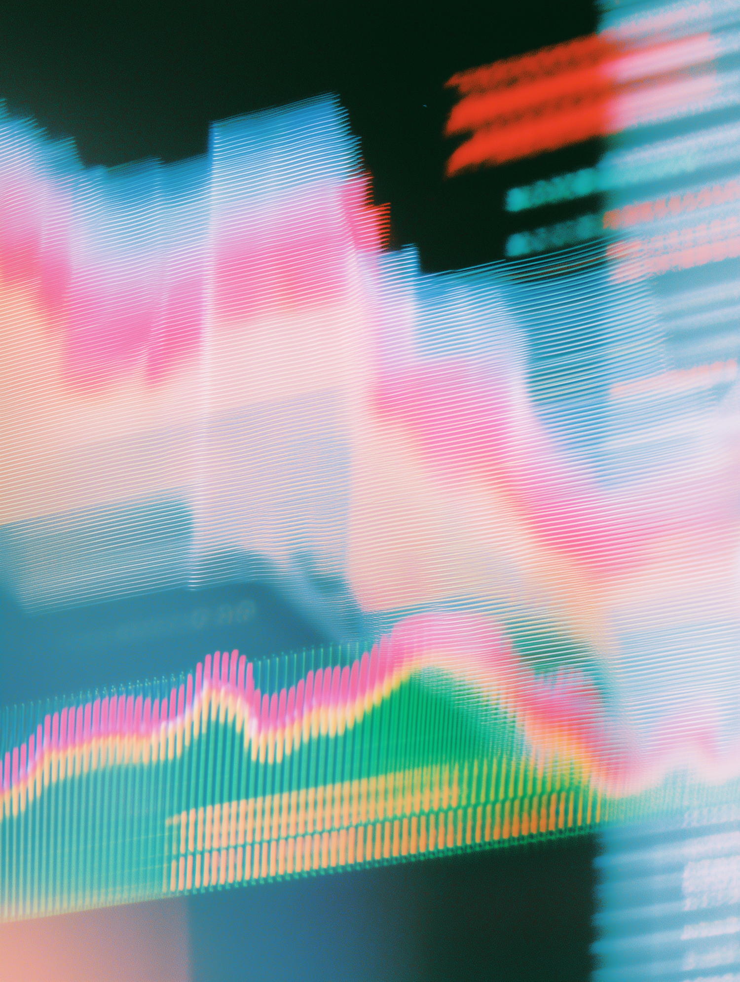 Abstract image of colorful, blurred data charts with vibrant pink, green, and blue hues on a dark background.