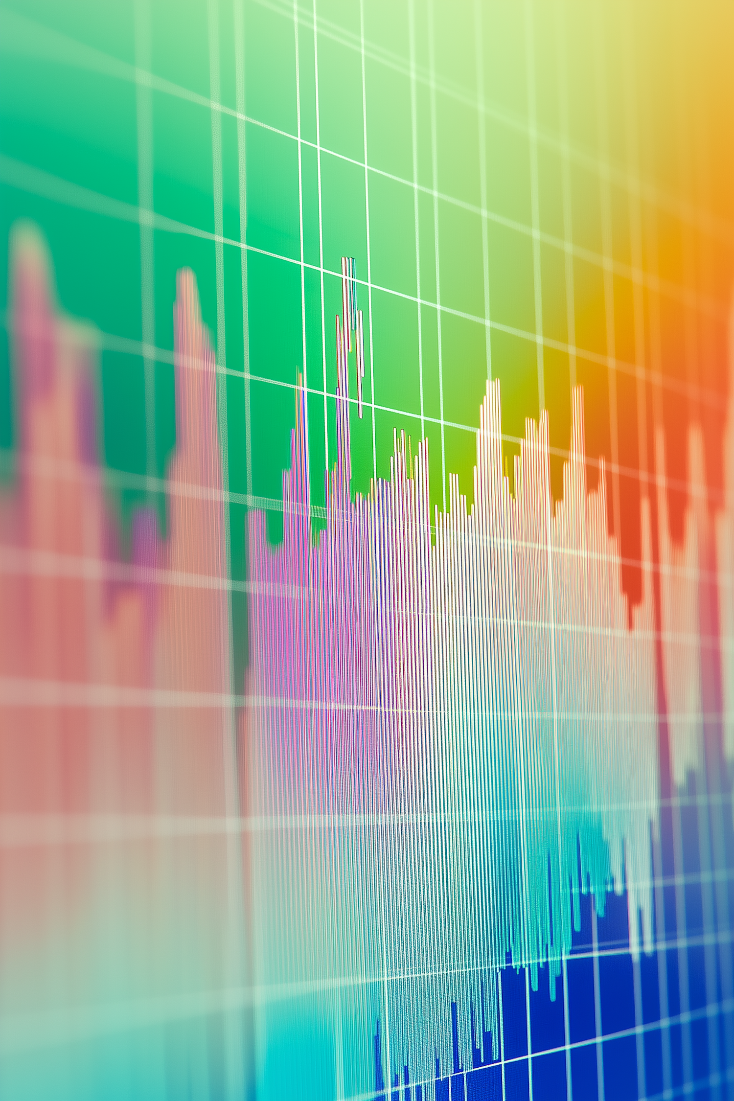 Colorful abstract graph with jagged peaks, gradient background, and grid lines, evoking themes of data, technology, and analytics.