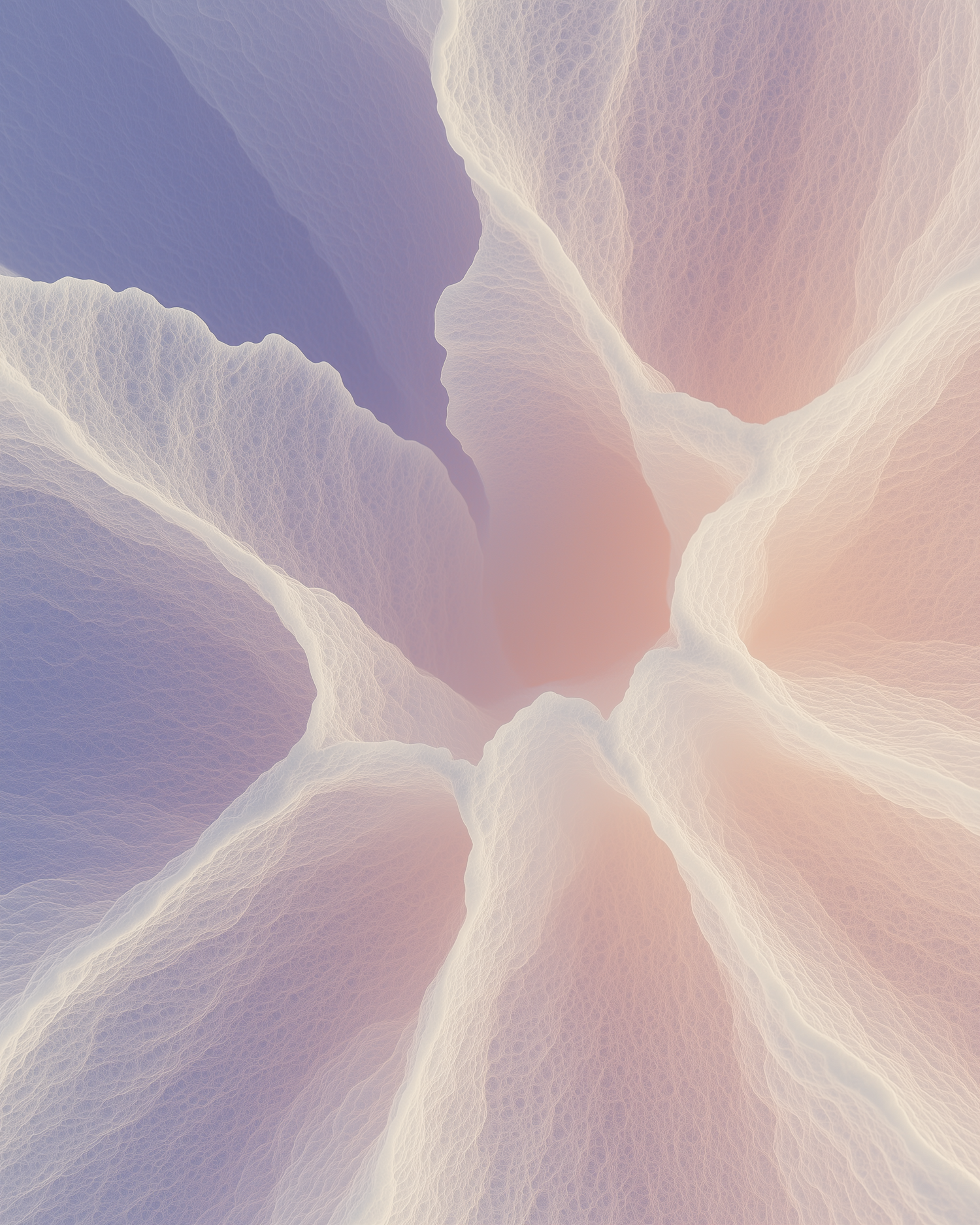 Abstract digital art with flowing lines in pastel lavender, peach, and cream, creating a soothing, ethereal floral pattern.