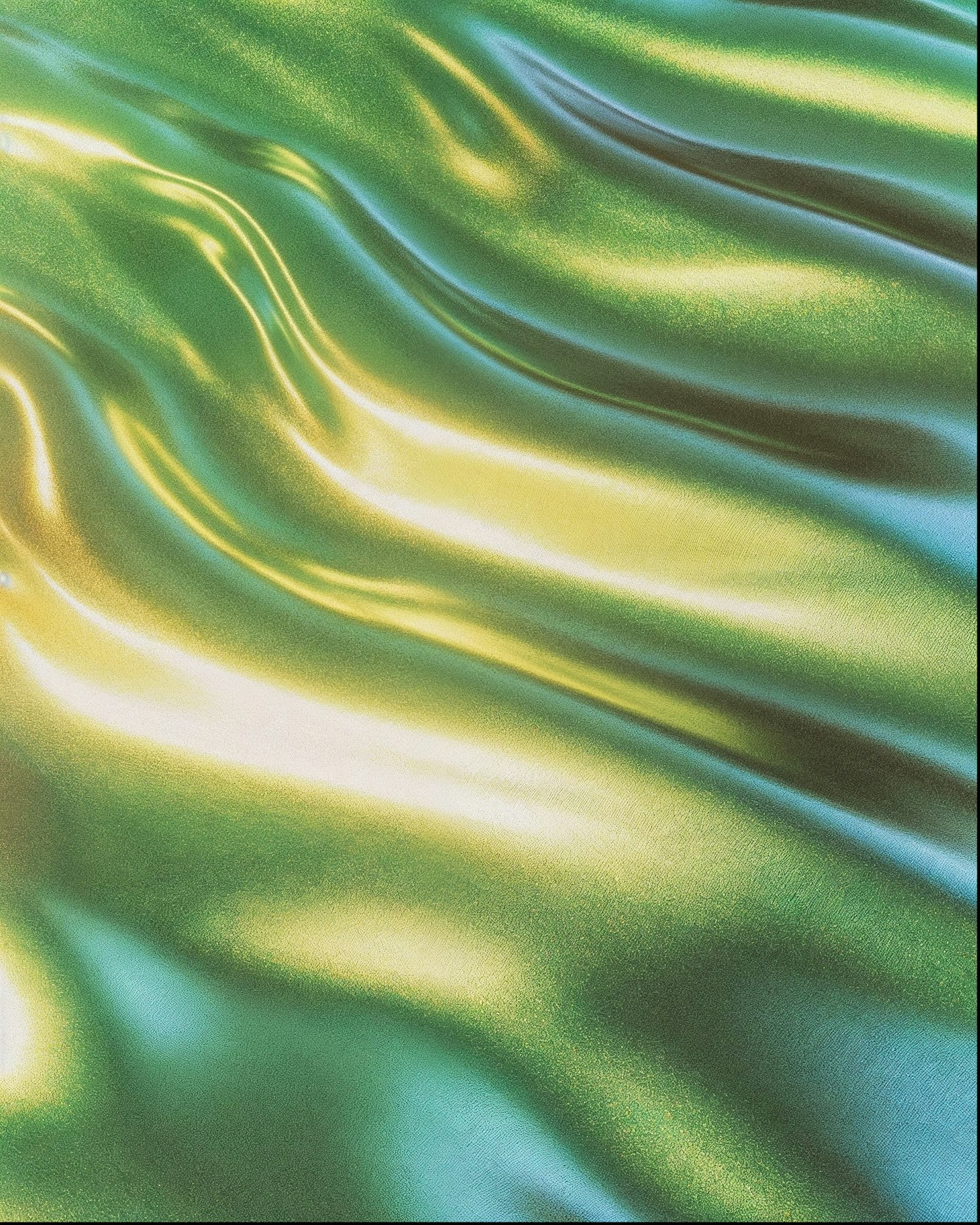 Abstract silky texture with vibrant green and yellow hues, creating a shimmering, fluid effect reminiscent of satin fabric.