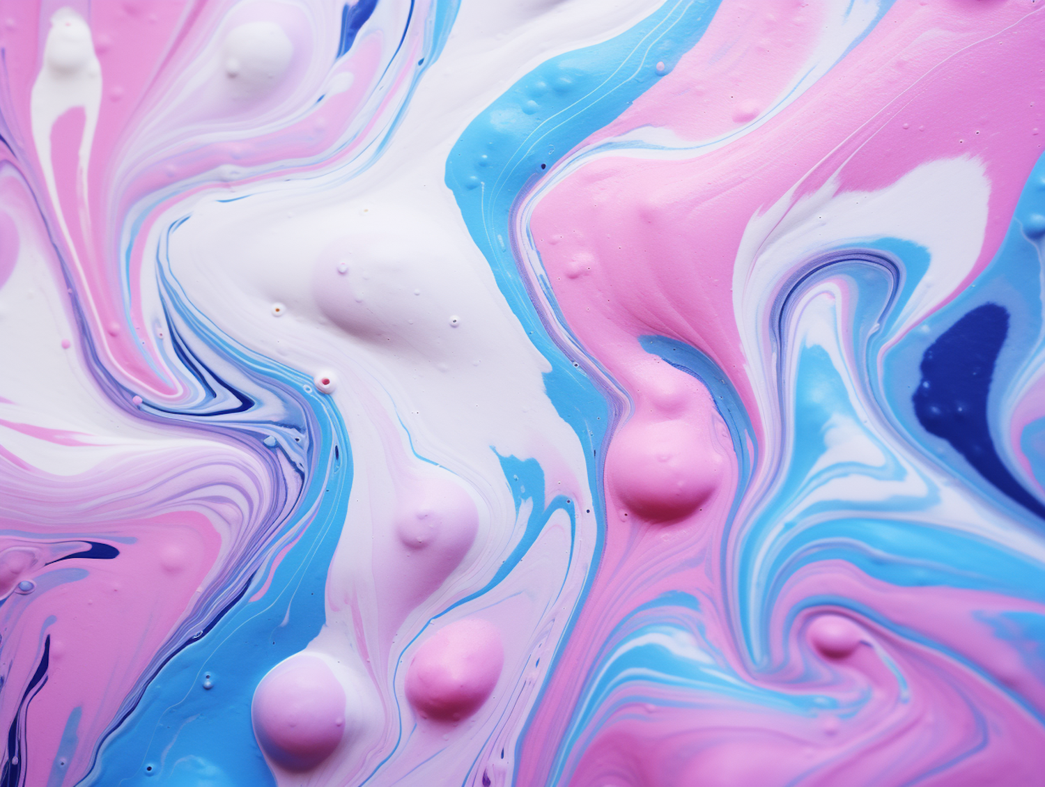 Vibrant abstract swirl of pink, blue, and white with a marbled texture, creating a dynamic and fluid visual effect.
