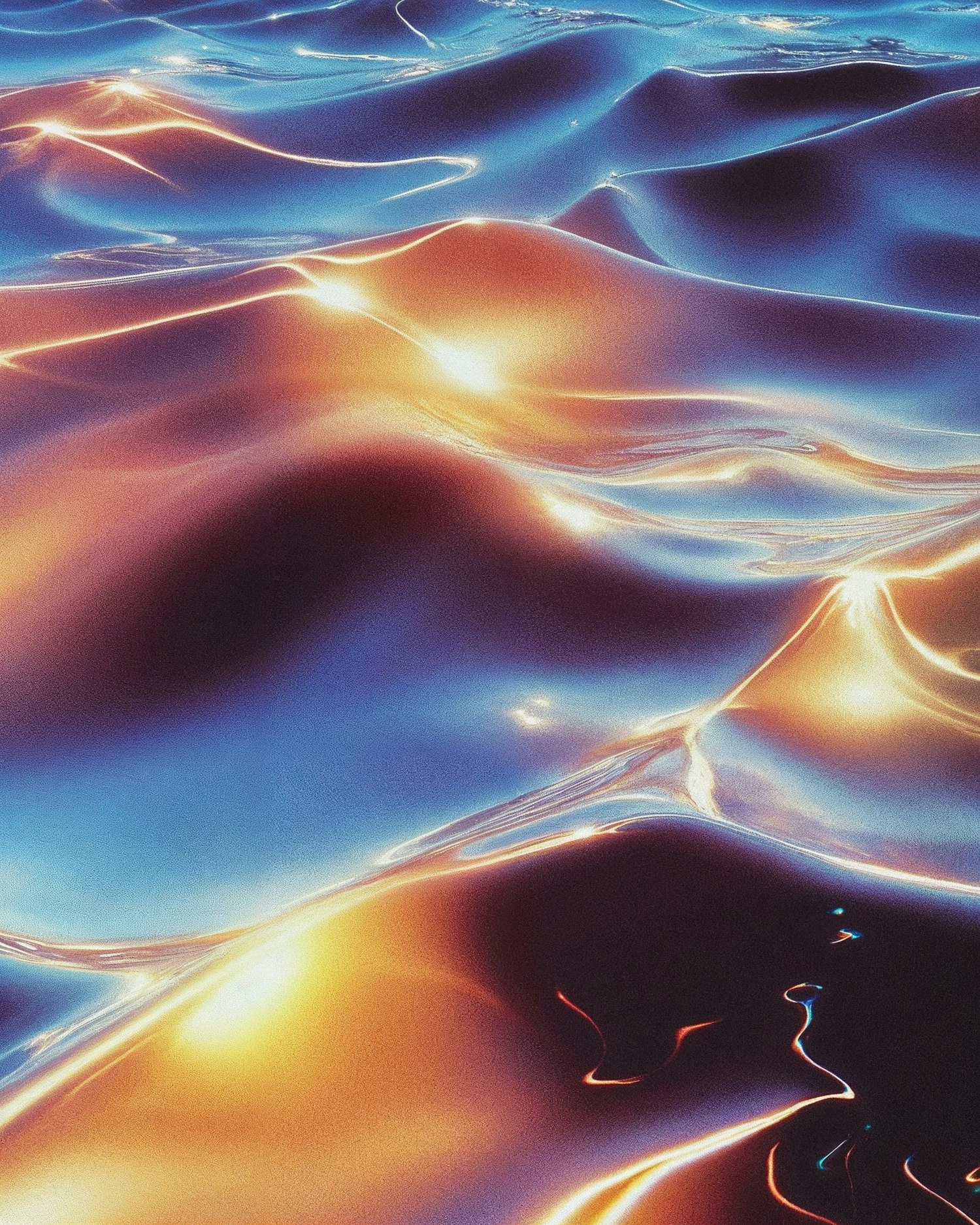 Abstract fluid waves with vibrant blue, orange, and yellow hues, creating a dynamic and glossy appearance.