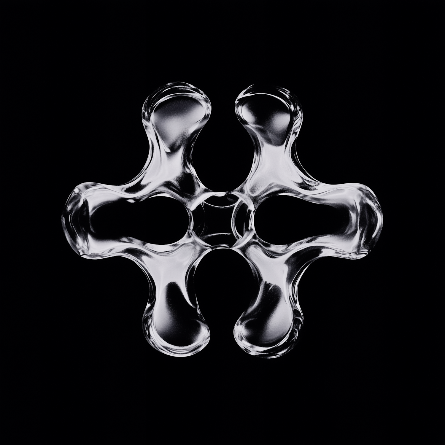 Abstract 3D glass-like structure with smooth, flowing contours on a black background, creating a futuristic and minimalistic design.