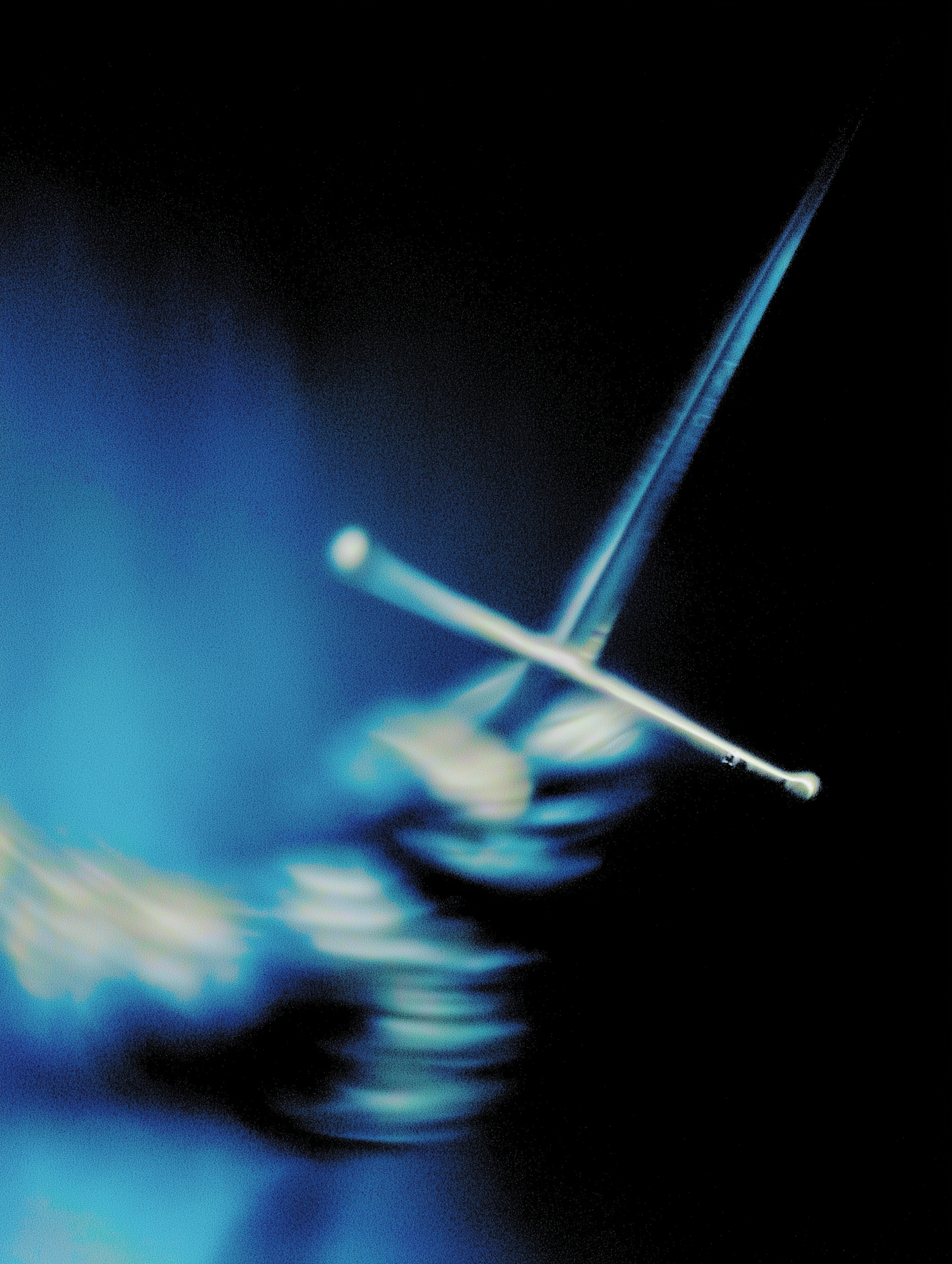 Abstract close-up of a glowing blue and white object with motion blur, set against a dark background, evoking a sense of energy and movement.