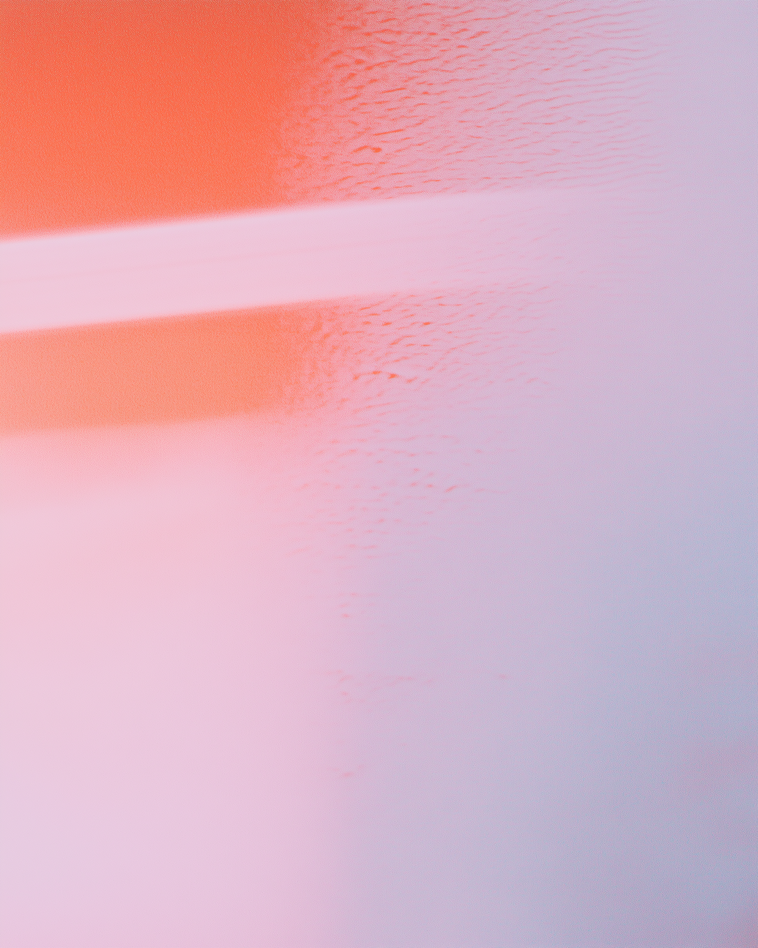 Abstract gradient of orange and pink hues with rippled texture and a horizontal streak, creating a minimalistic and soothing visual.