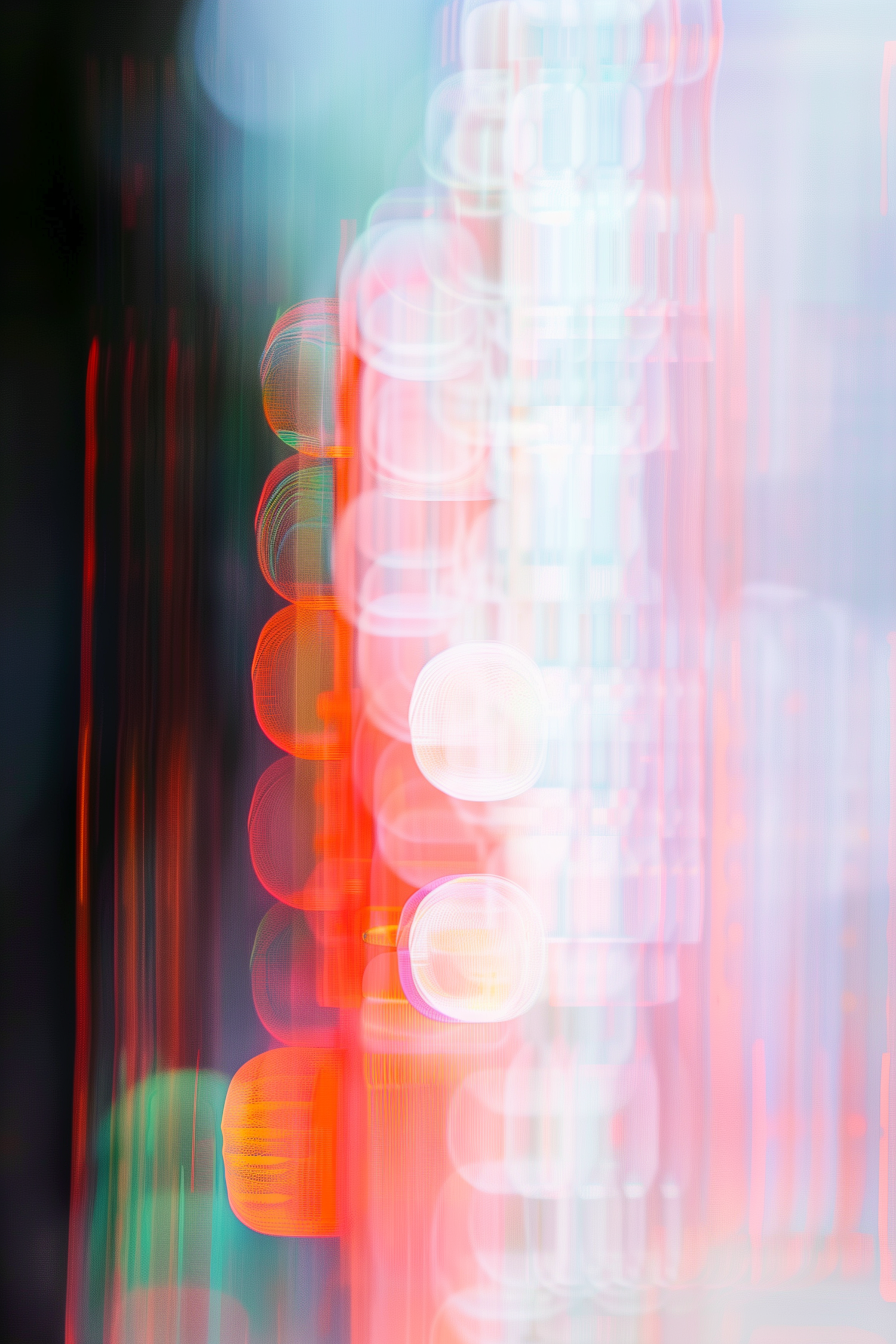 Abstract light patterns with vibrant red, orange, and white hues, creating a dreamy, motion-filled effect. Perfect for modern art lovers.