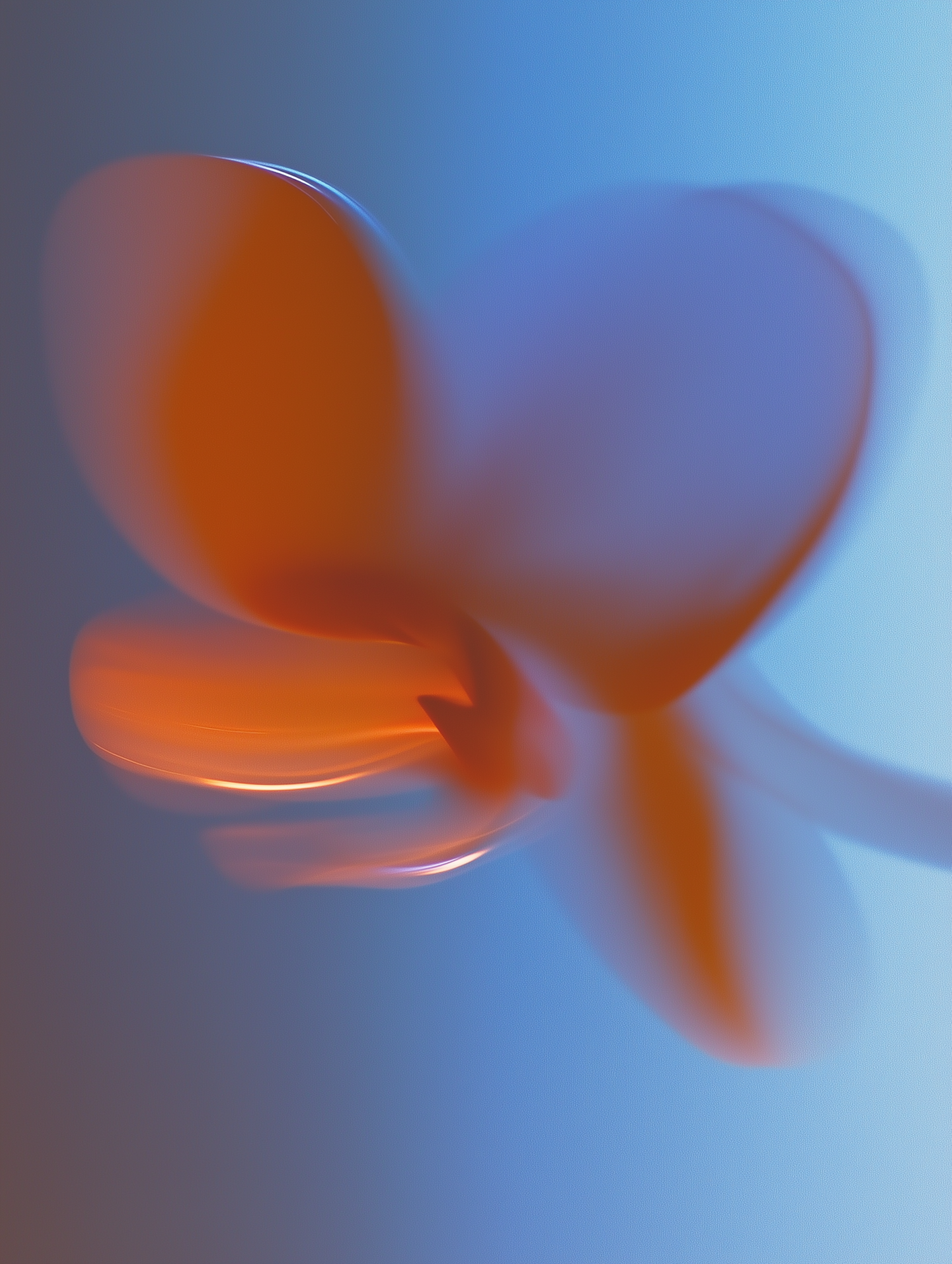 Abstract art with flowing orange shapes against a gradient blue background, blending warm and cool tones for a dreamy, modern vibe.