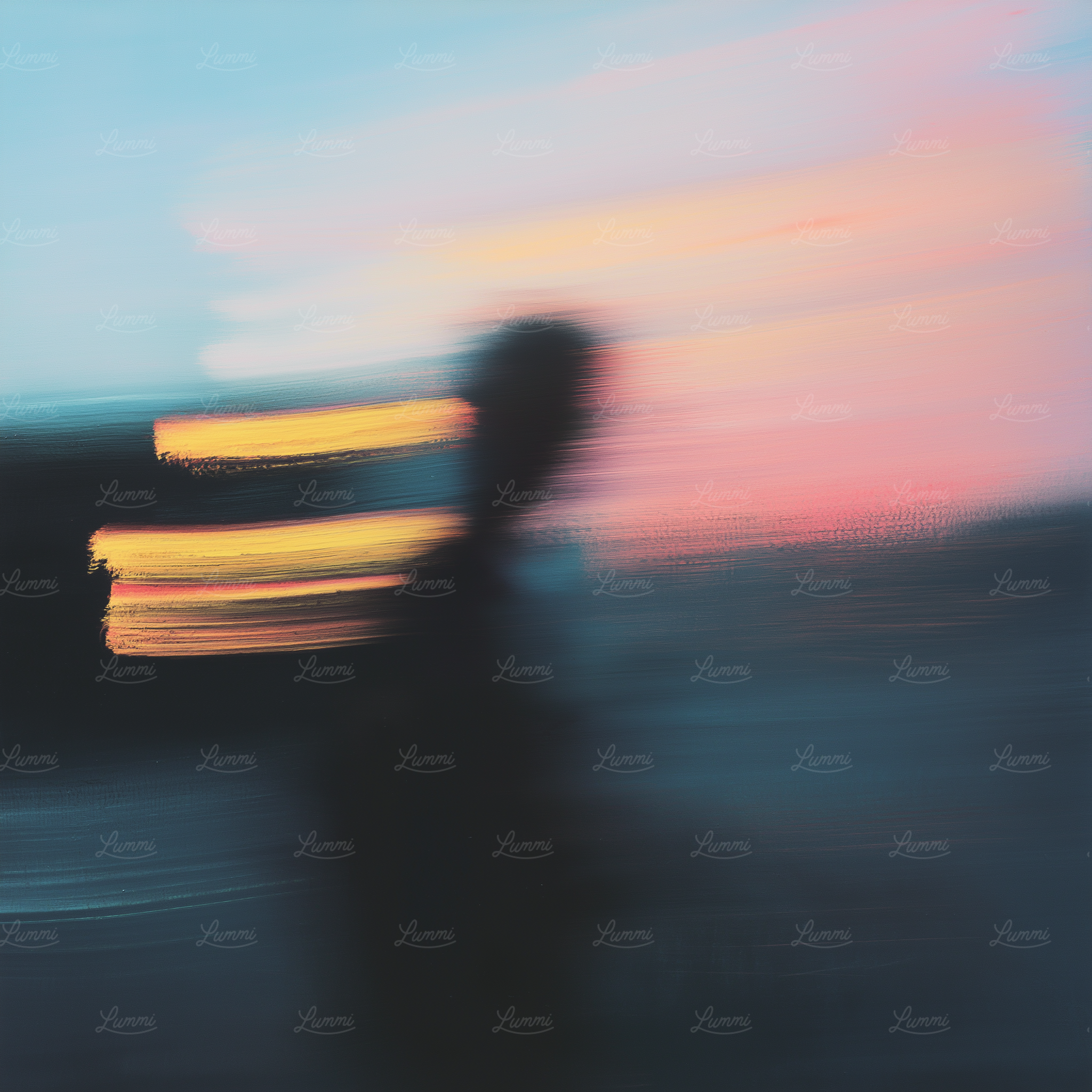 Abstract blurred silhouette with vibrant pink, blue, and orange hues, creating a dreamy, ethereal atmosphere with a sense of motion.