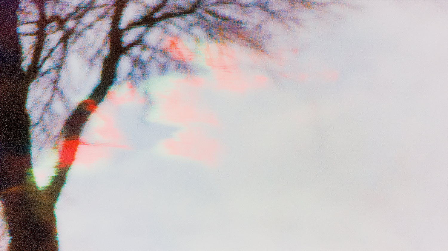 Abstract image of a tree with blurred branches and refracted colors blending into a pale, dreamy background.