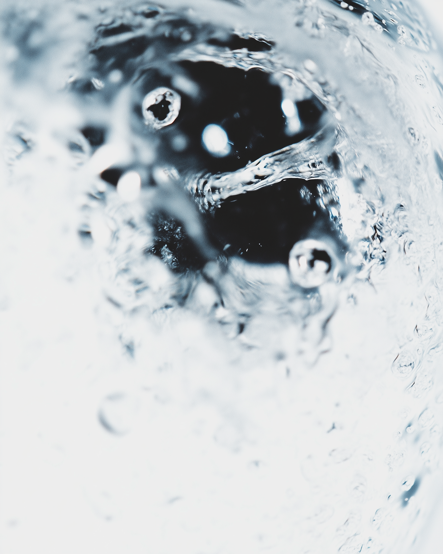 Abstract close-up of swirling water with bubbles and light reflections, creating a dynamic and refreshing visual texture.