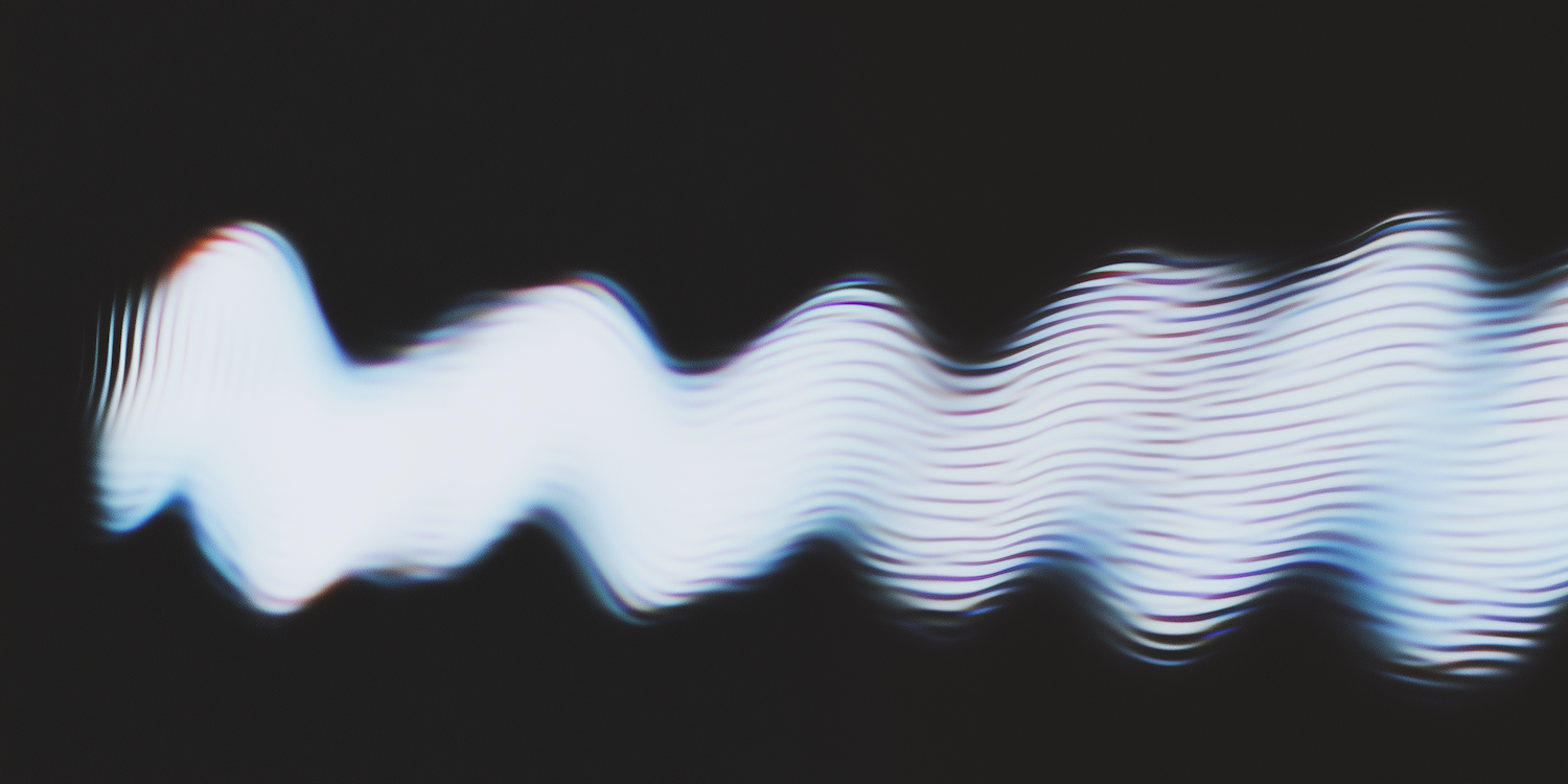 Abstract wavy light pattern with white, blue, and red hues on a dark background, creating a dynamic and fluid visual effect.