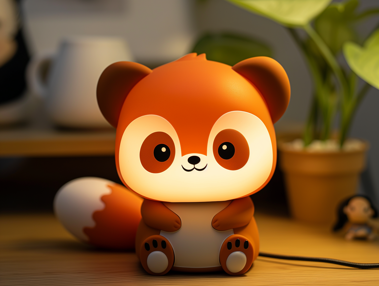 Adorable red panda night lamp with a warm glow, perfect for cozy decor. Features a cute cartoon design and soft orange-white tones.