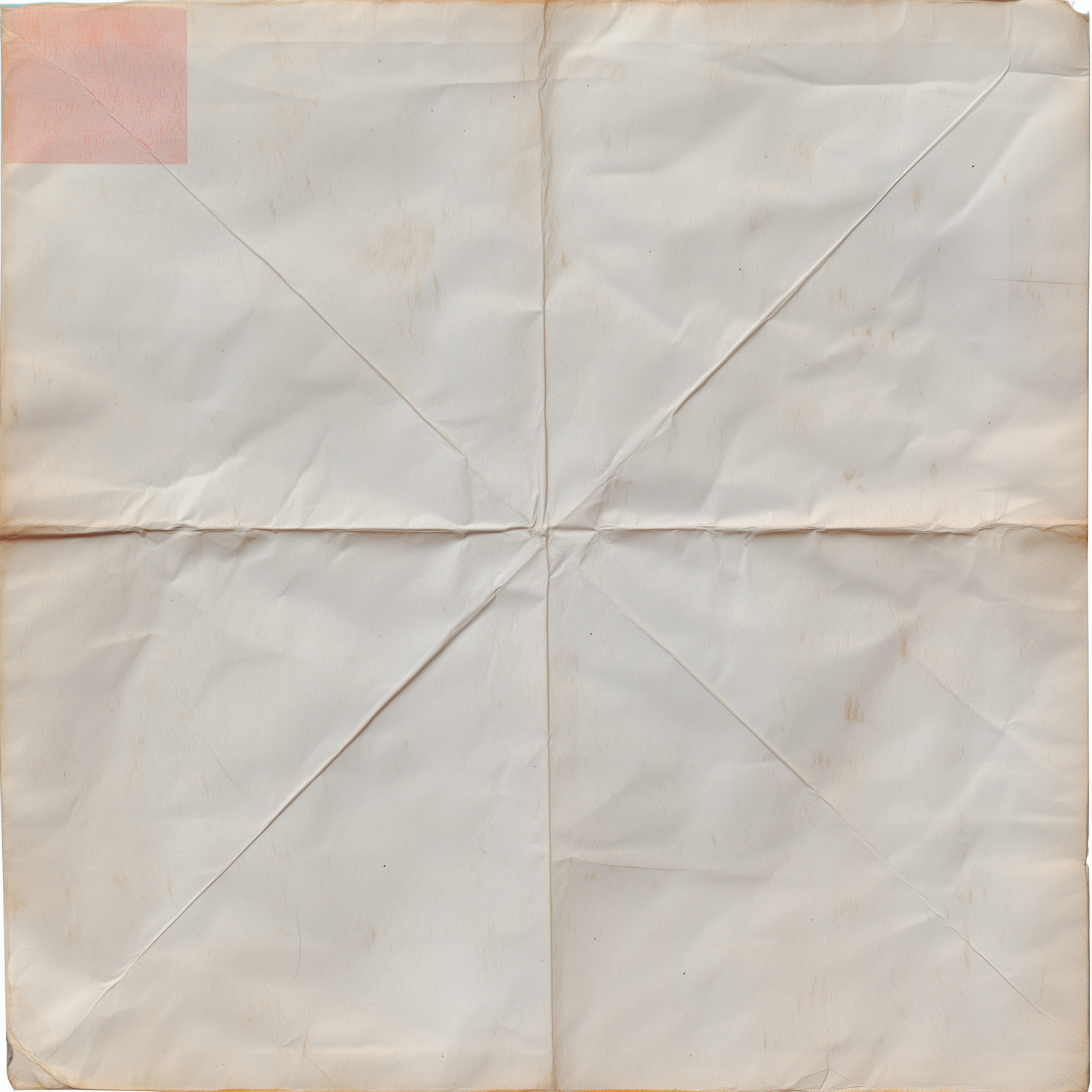 A vintage, crumpled paper with fold lines and a faint red mark in the corner, perfect for adding a nostalgic or aged effect to designs.
