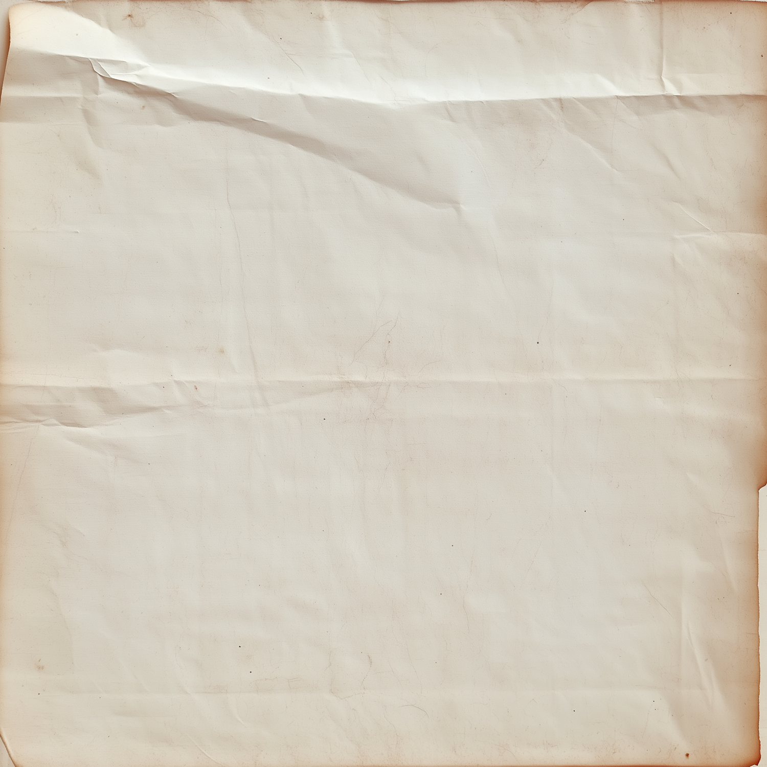 A vintage, crumpled piece of paper with visible folds, stains, and a yellowish tint, perfect for antique or rustic design projects.