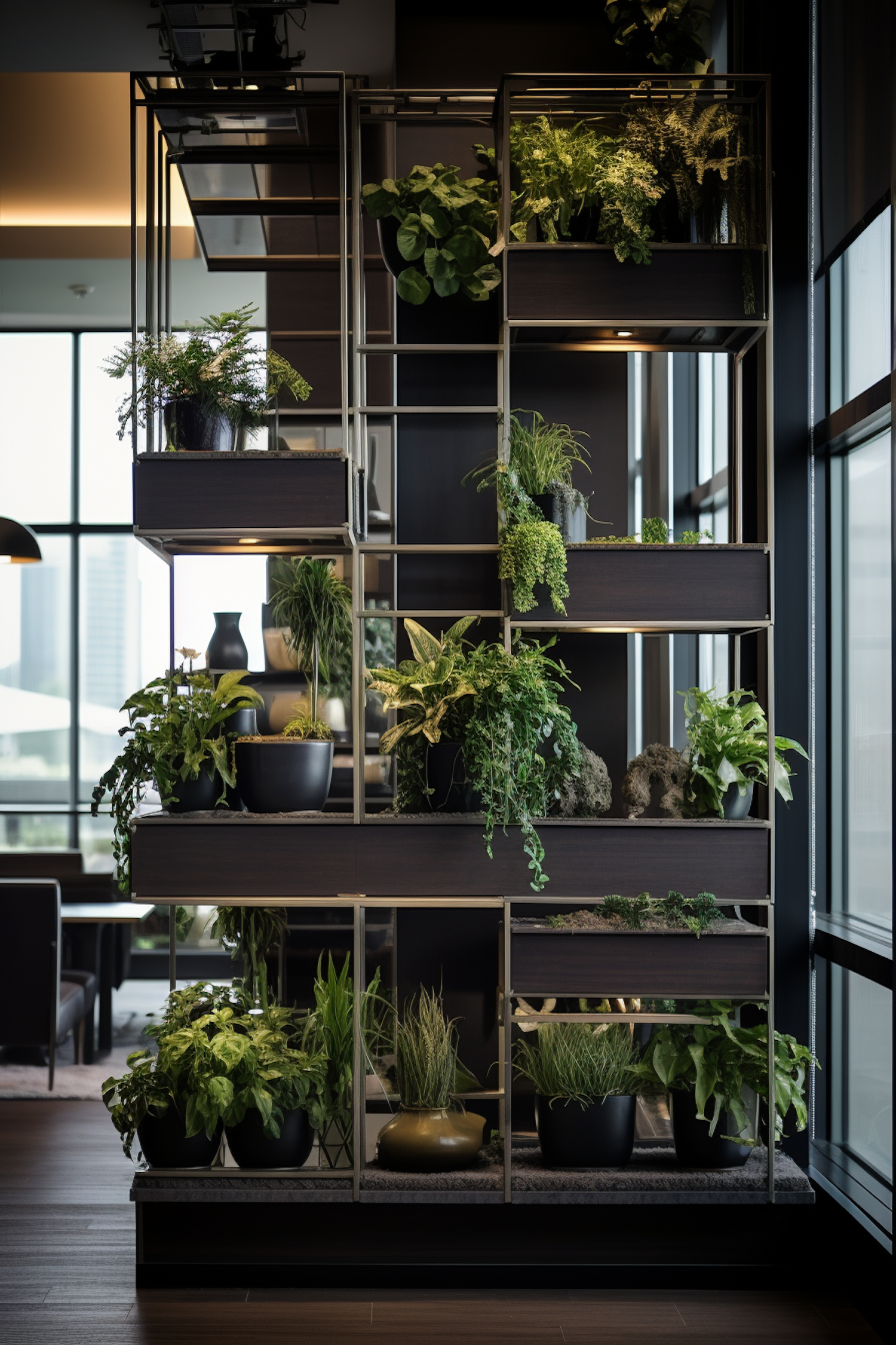 Elegant Modern Industrial Plant Shelf with Lush Greenery