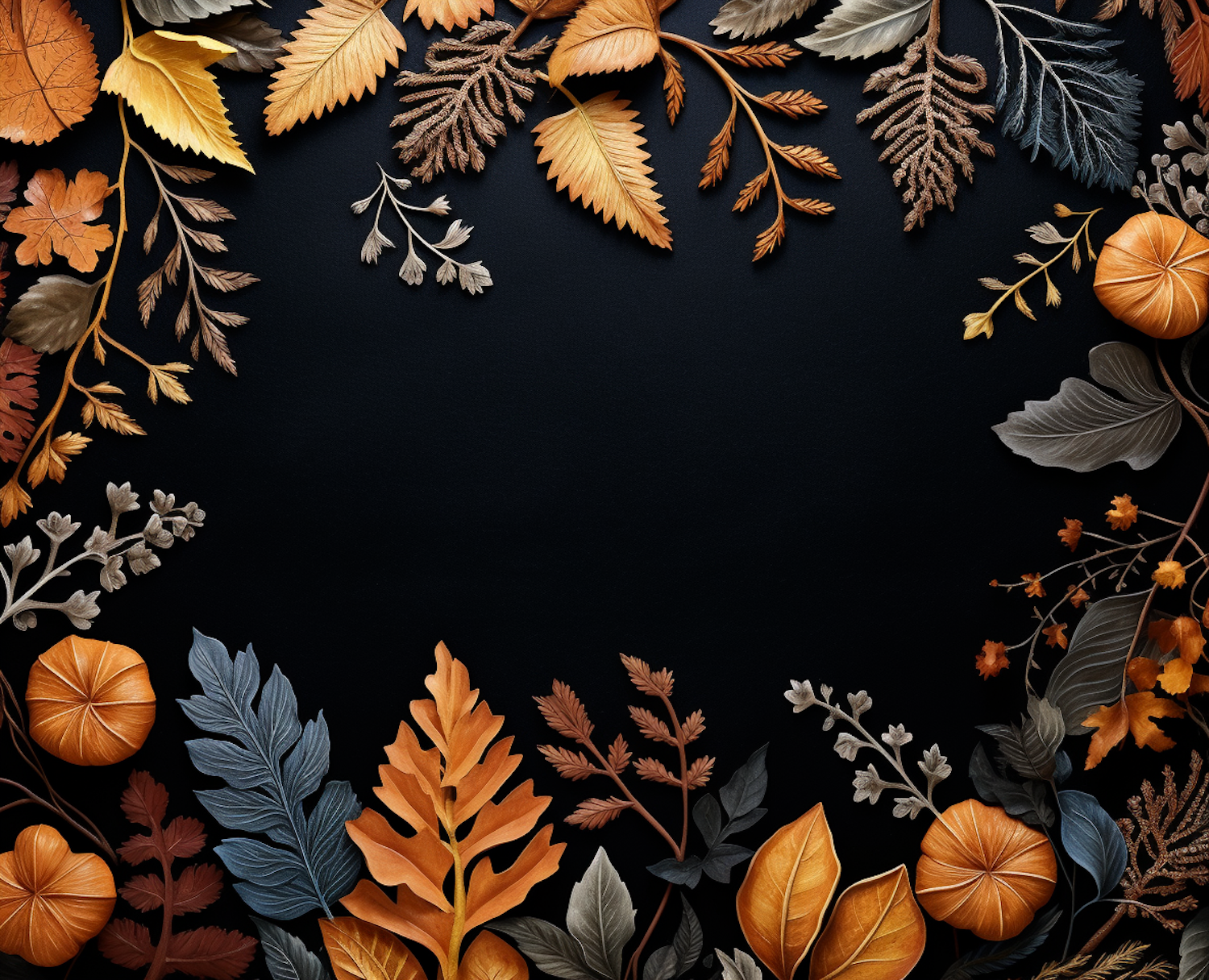 Elegant autumn leaves in vibrant colors frame a black background, creating a stunning seasonal design.