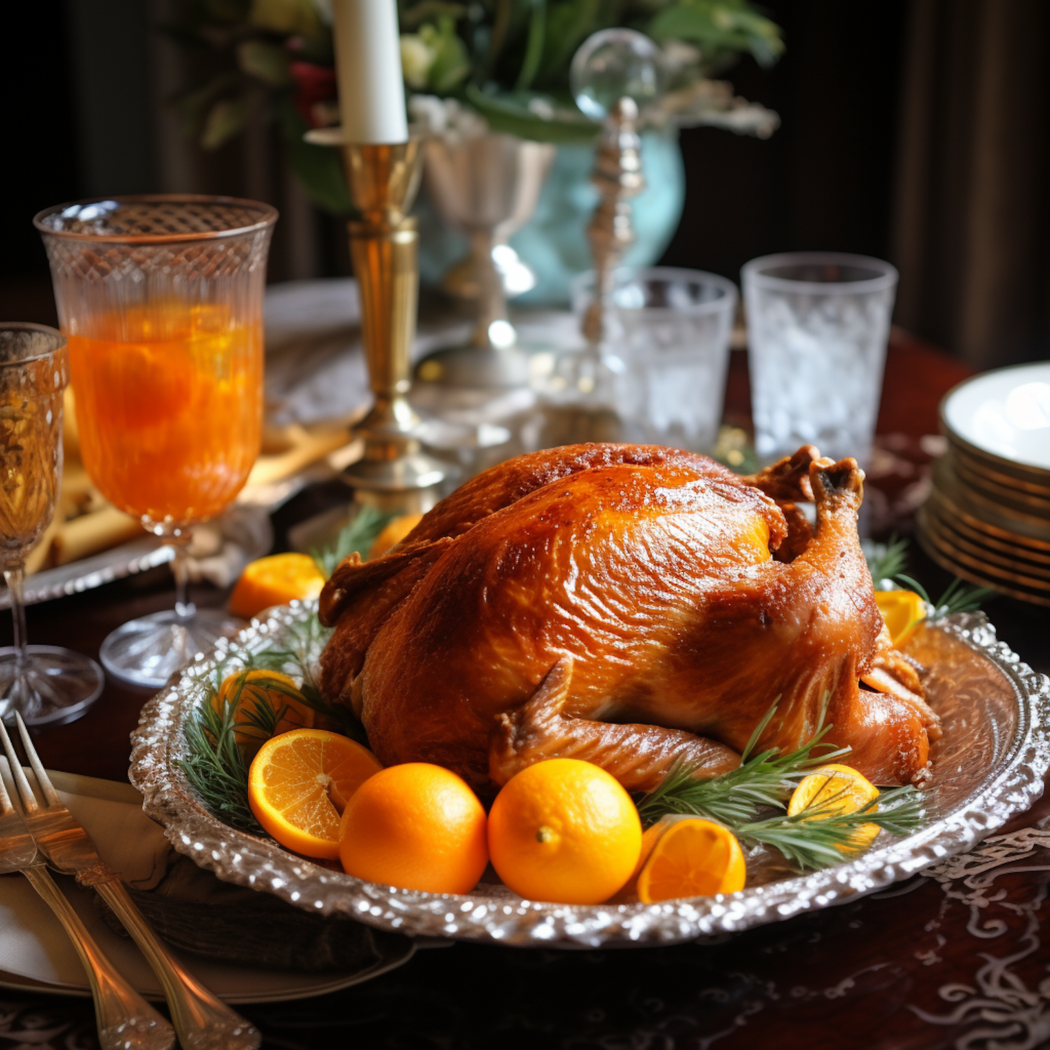 Festive Roasted Turkey with Citrus and Rosemary on a Silver Platter