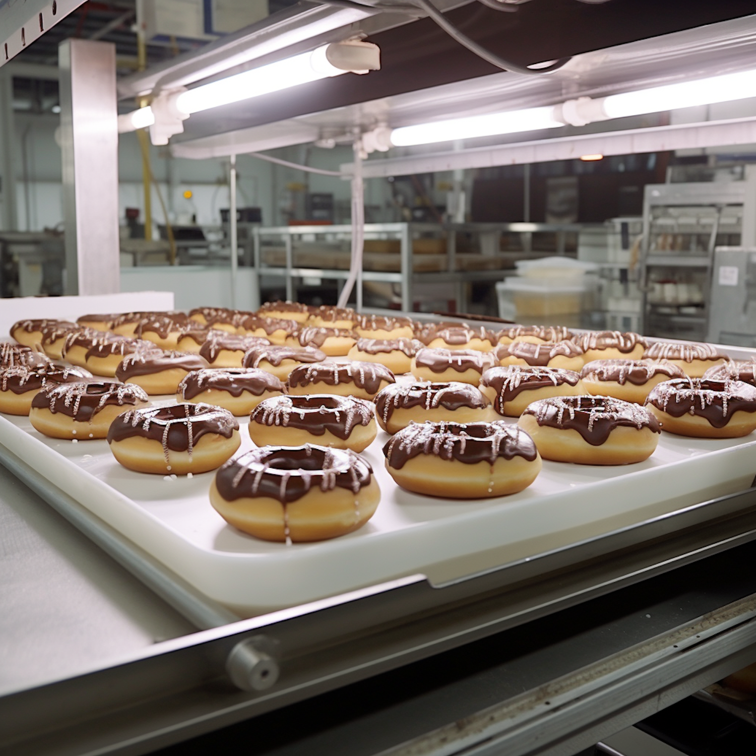 Industrial Chocolate-Striped Glazed Doughnuts