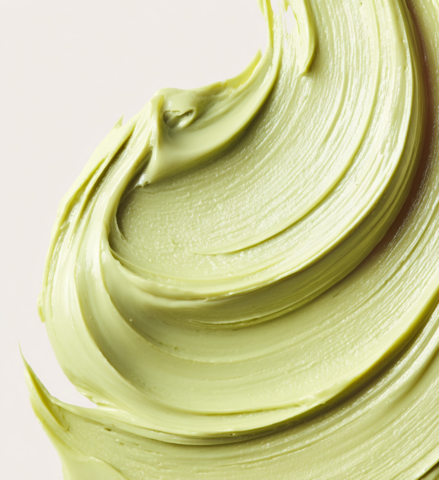 Close-up of a smooth, light green creamy texture with artistic swirls, perfect for skincare or food product visuals.