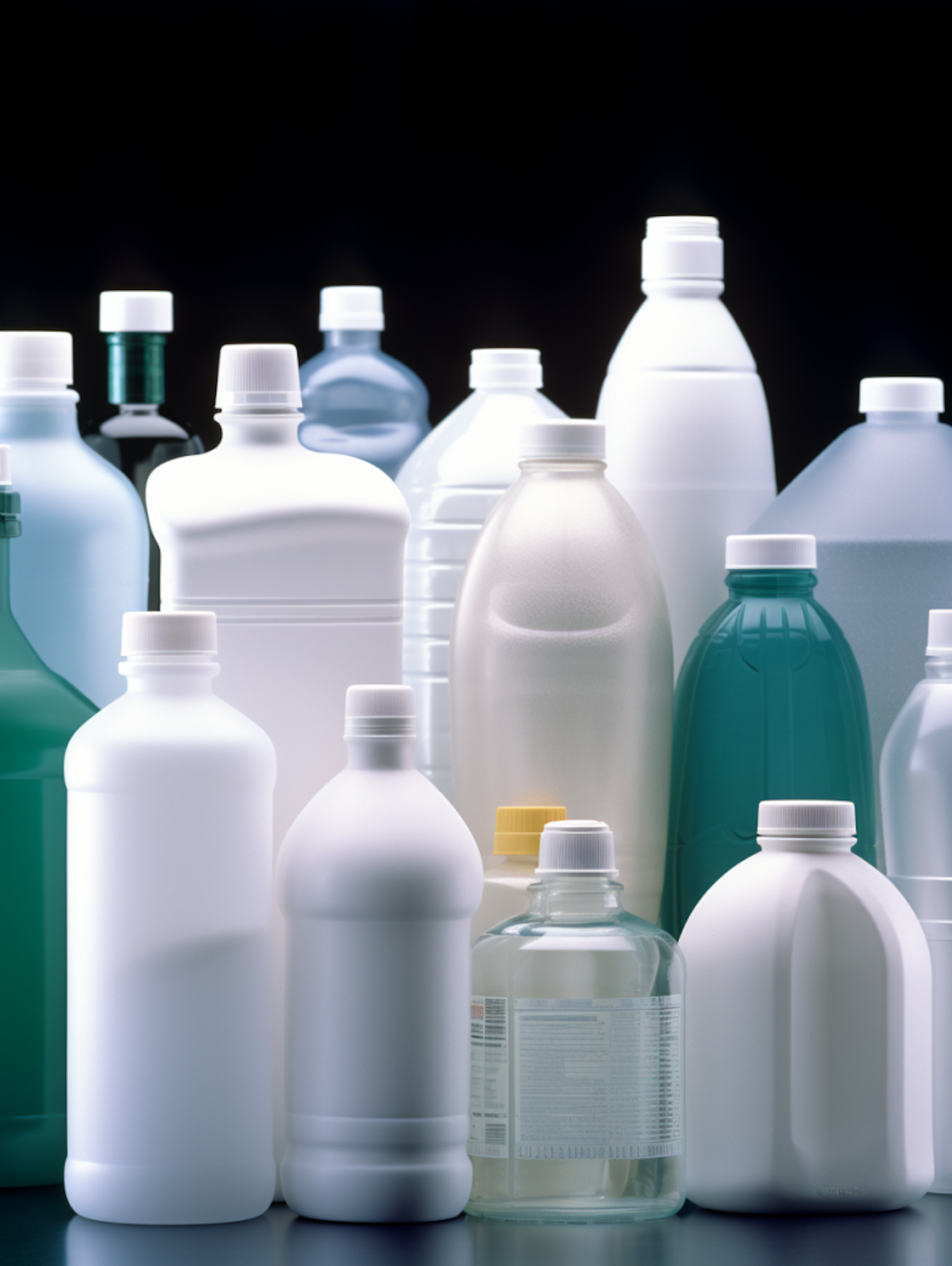 Assorted plastic bottles in various shapes and colors against a dark background, showcasing diverse designs and purposes.