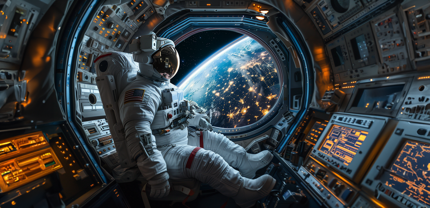 Astronaut Observing Earth from Spacecraft