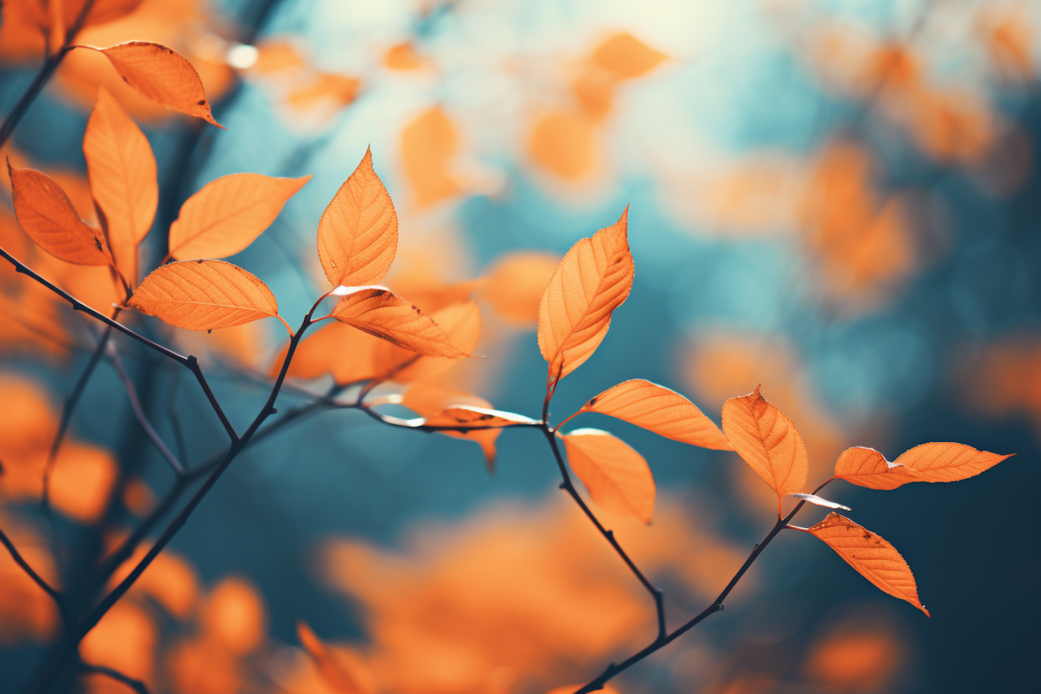 Autumnal Luminance: Vibrant Orange Leaves in Soft-Focus