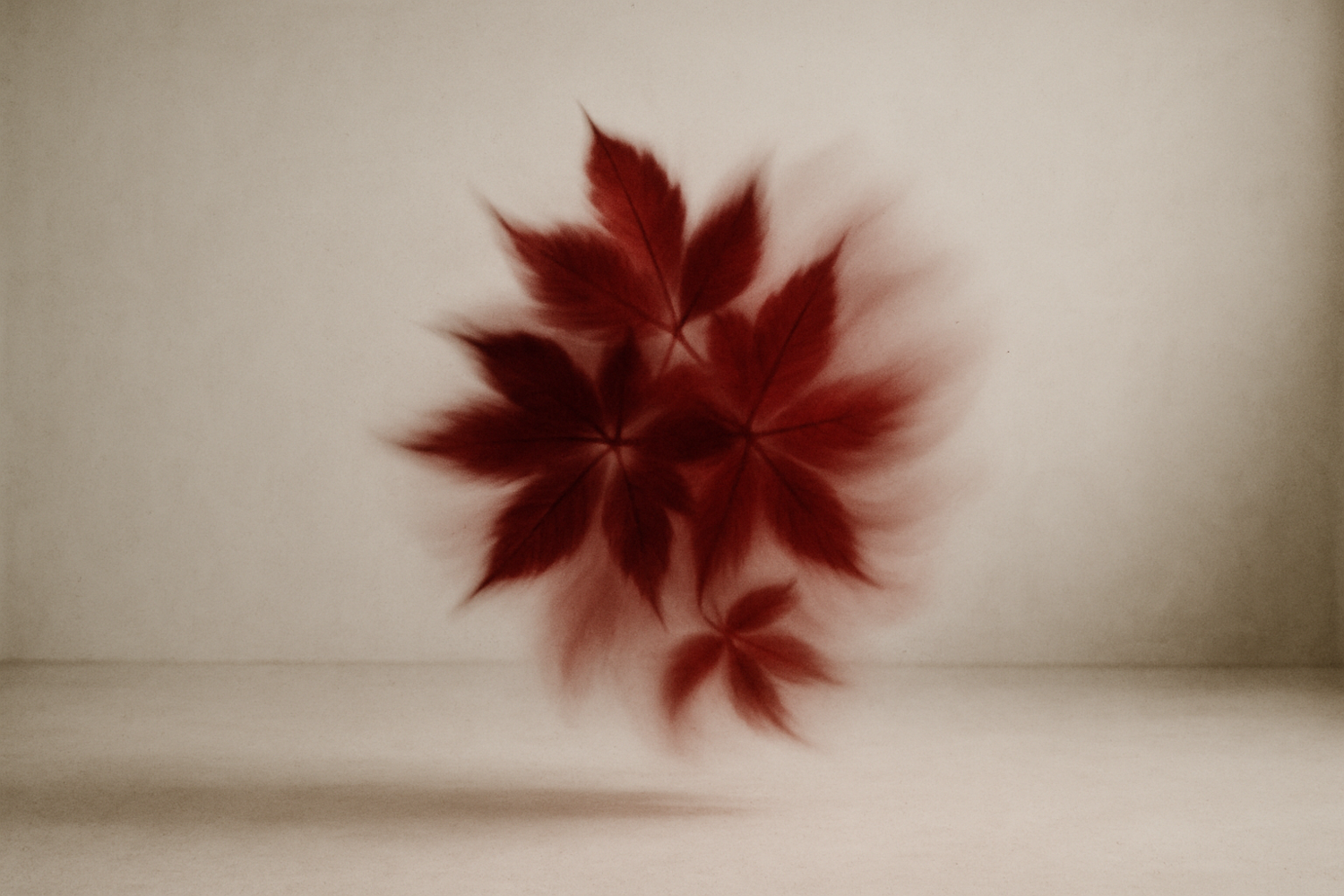 Stunning image of vivid red autumn leaves with a soft beige background, creating an artistic play of textures and contrasts.